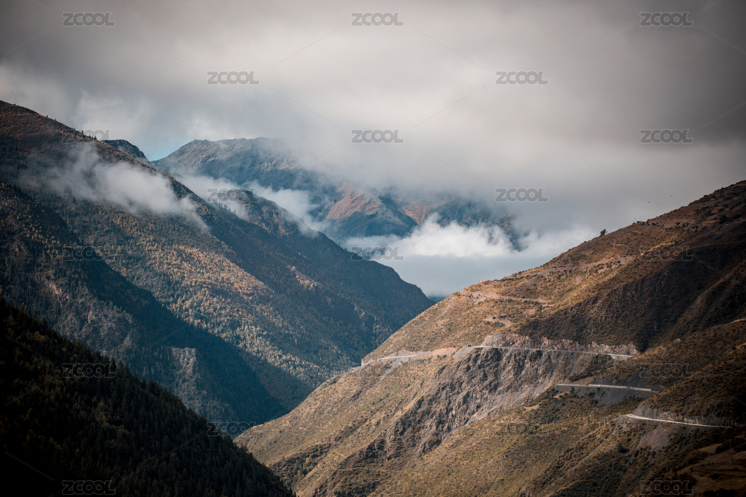 中国四川川西高原云雾中的高山