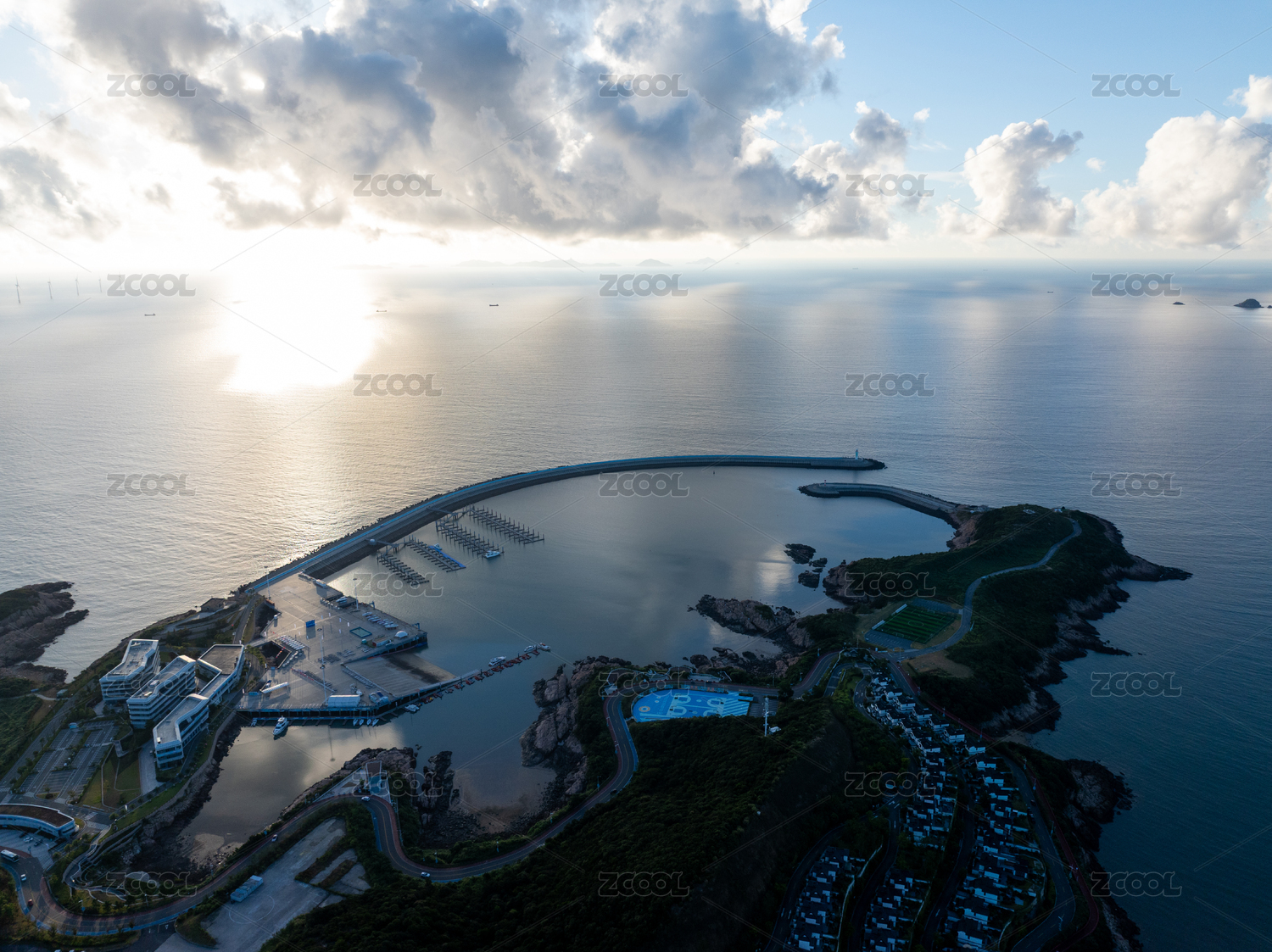 俯瞰朝阳中的大连南海壹号