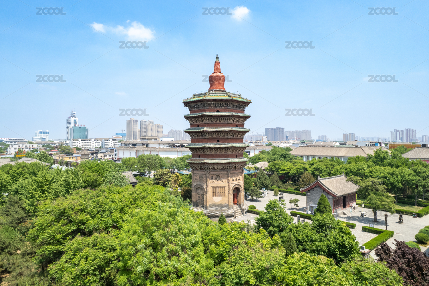 中国河南省安阳市天宁寺文峰塔航拍