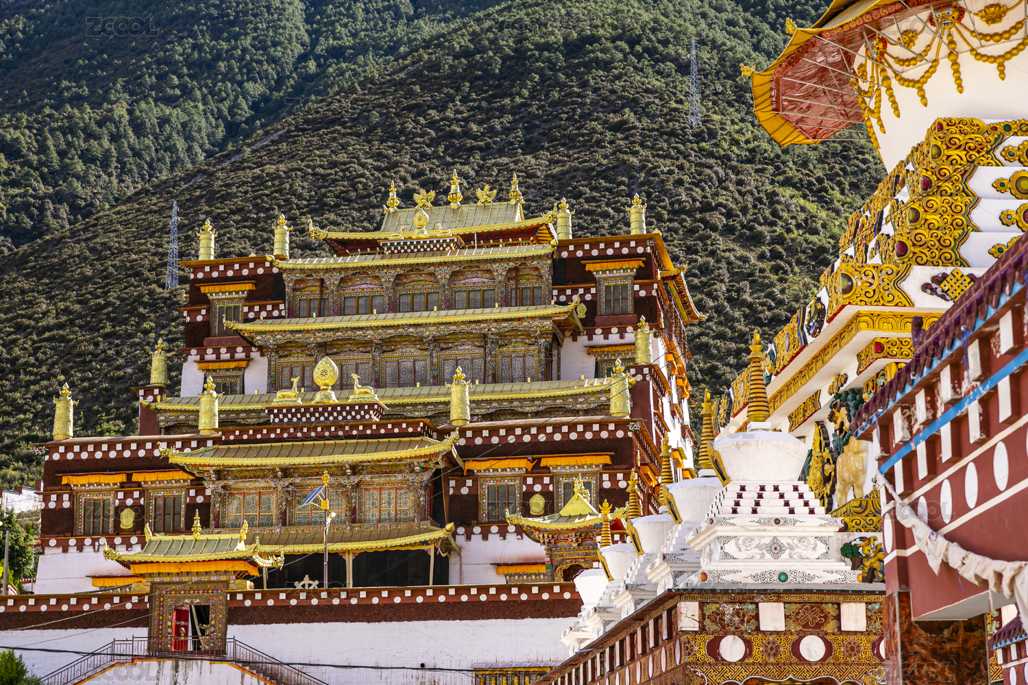 中国四川甘孜乡城县桑披岭寺寺庙建筑