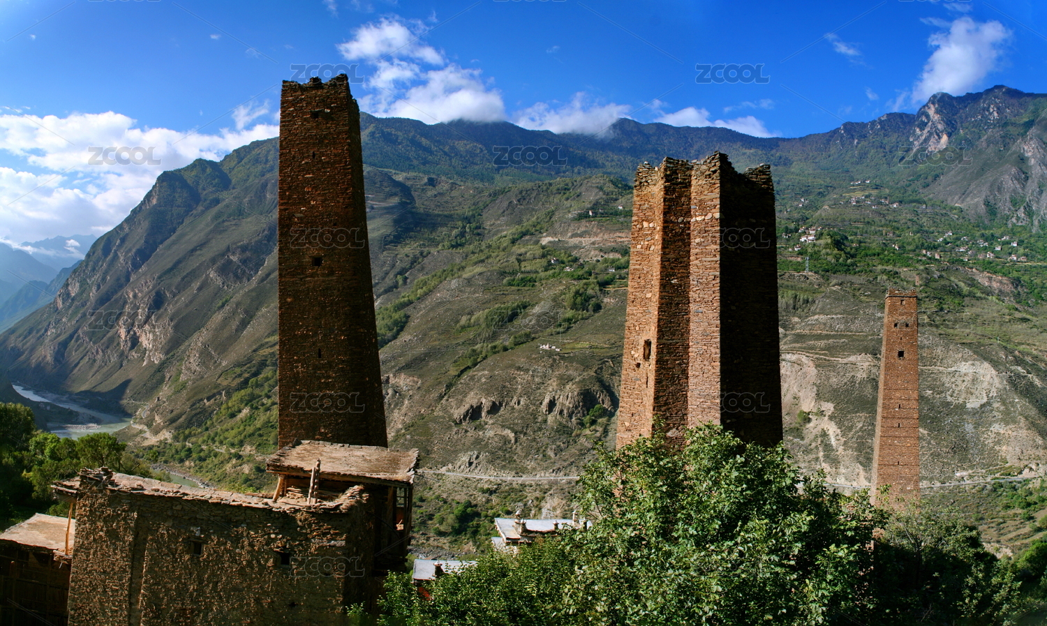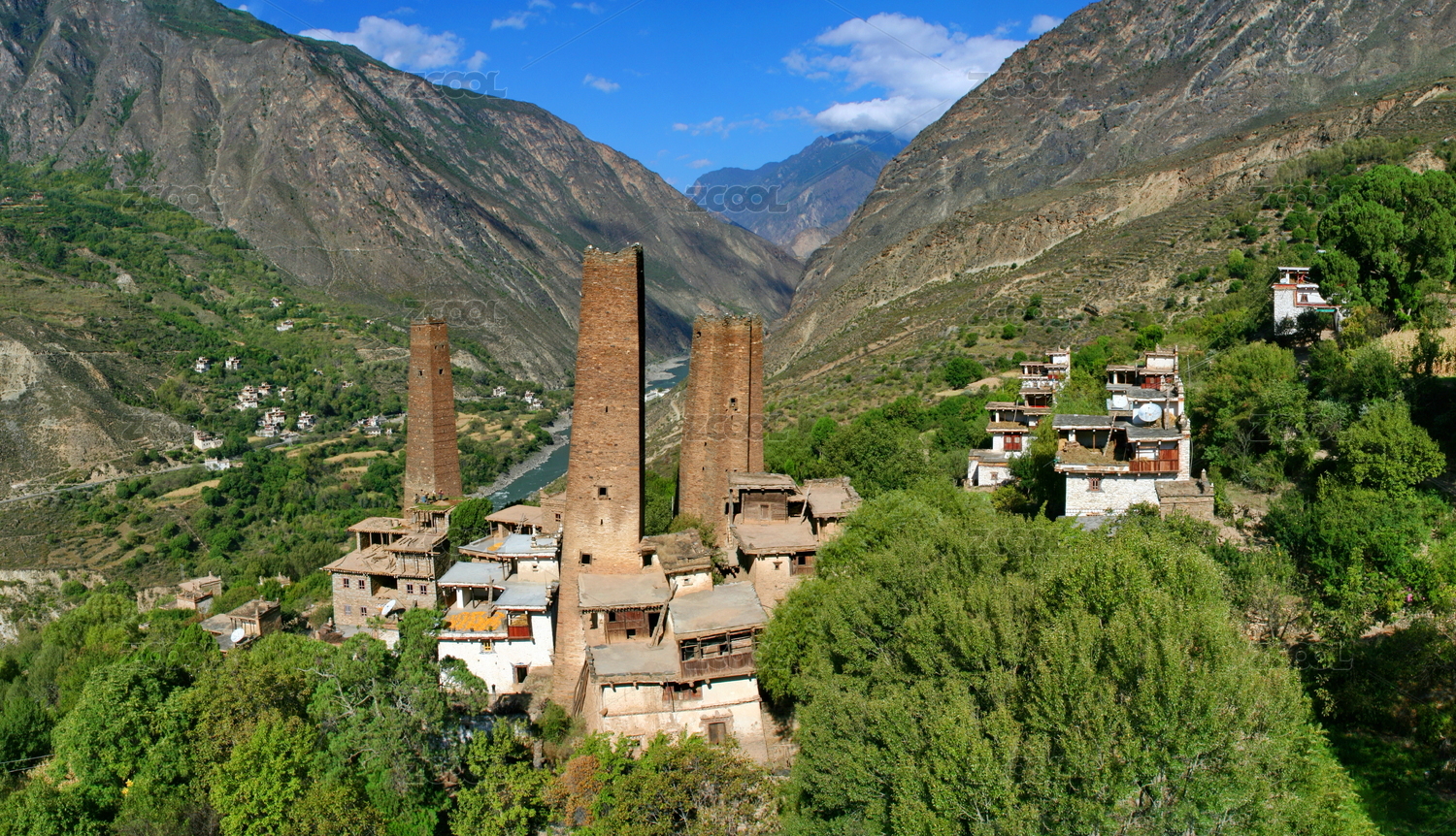 中国四川甘孜州丹巴县中路藏寨与碉楼