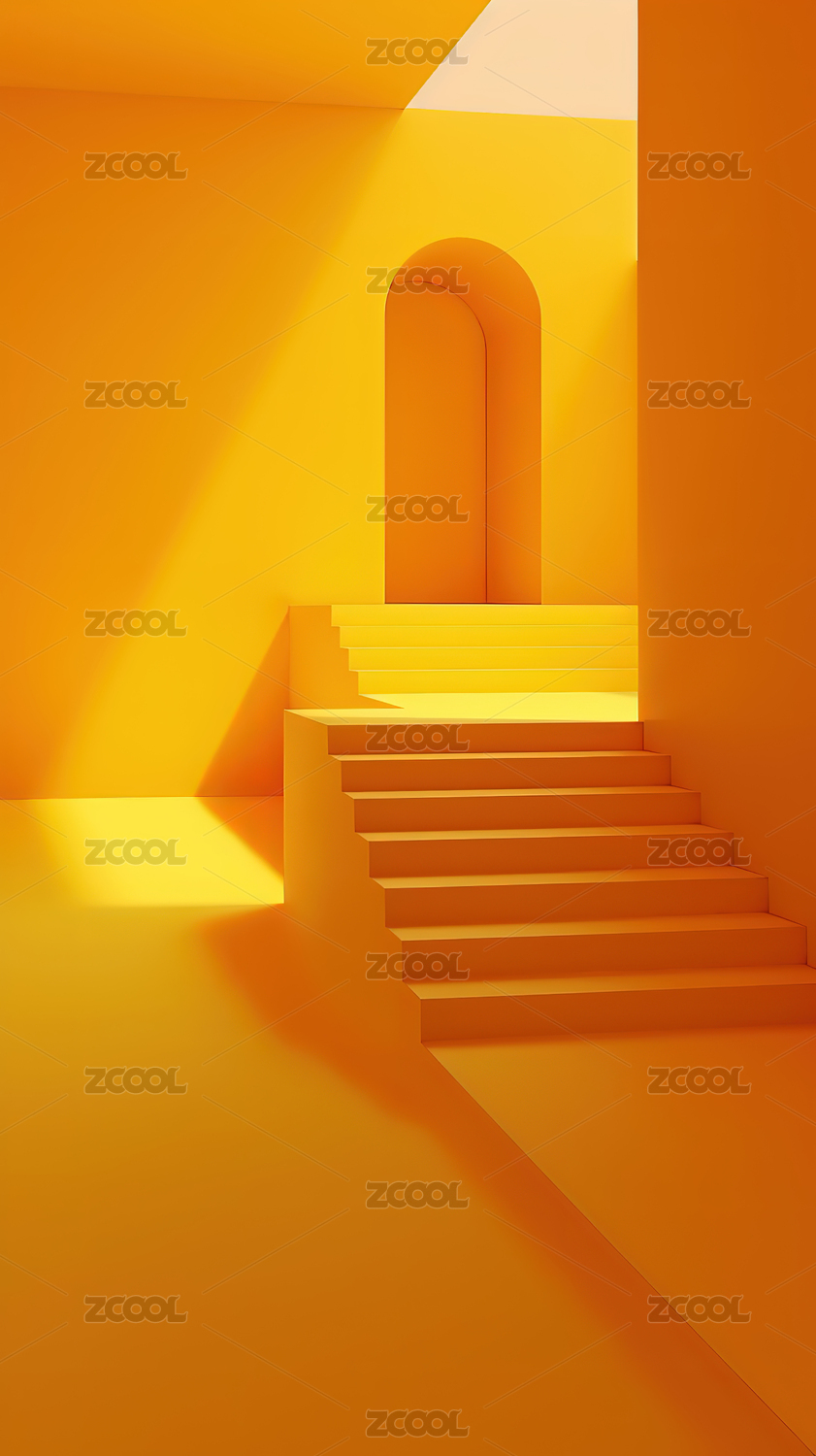 黄色房间白色台阶拱门