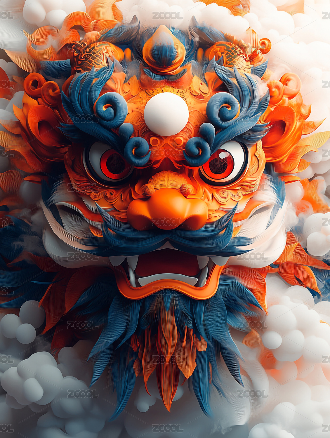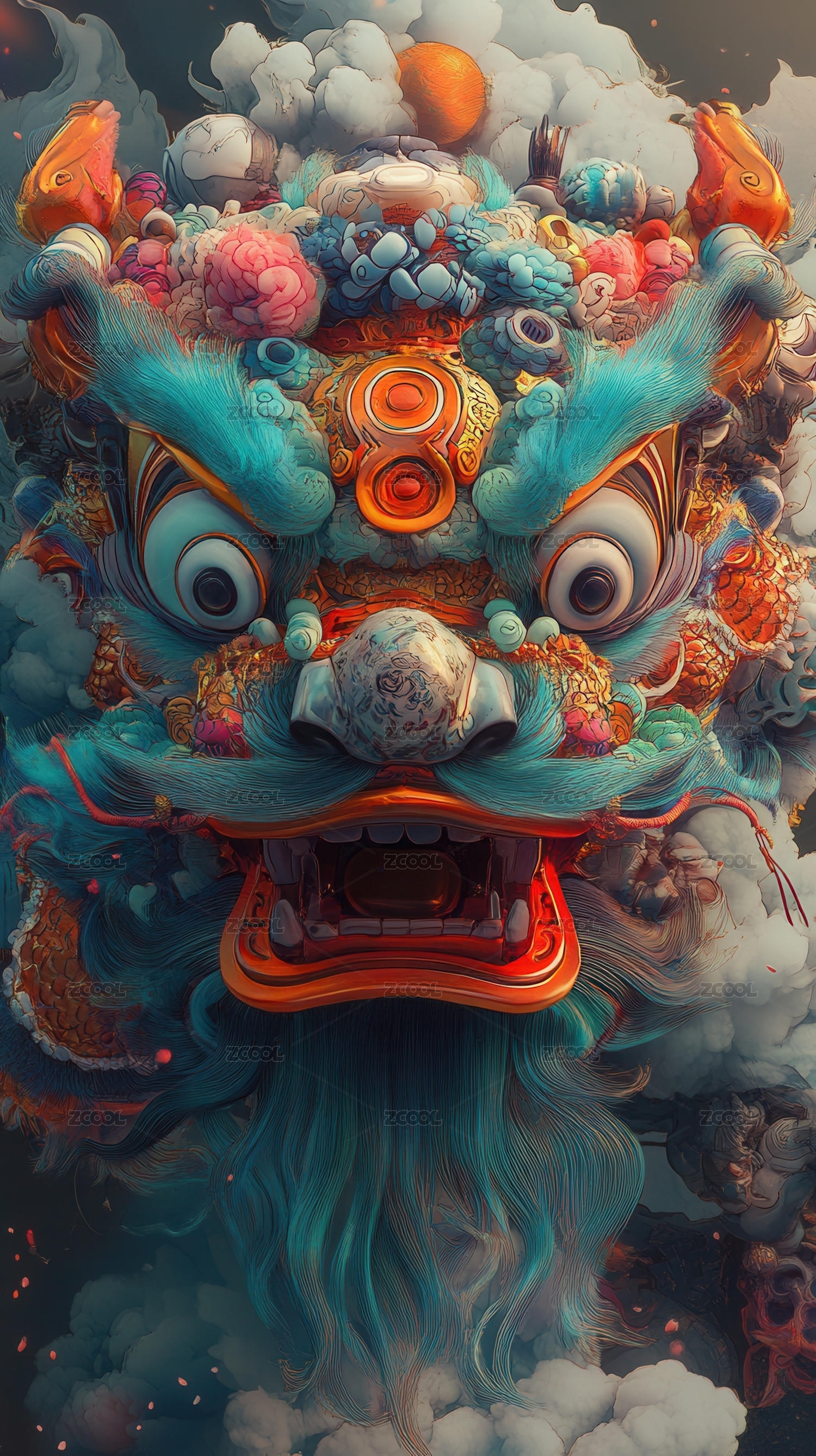 梦幻彩色中国舞狮