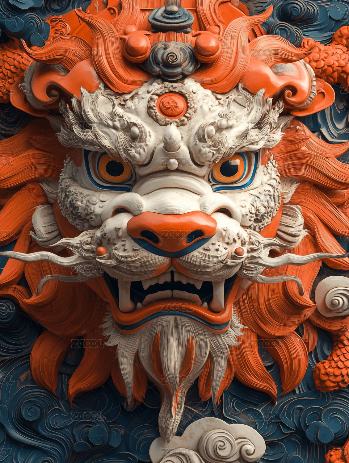 艺术,中国风,金色,传统,神兽,卡通,蓝色,红色,节日,新年