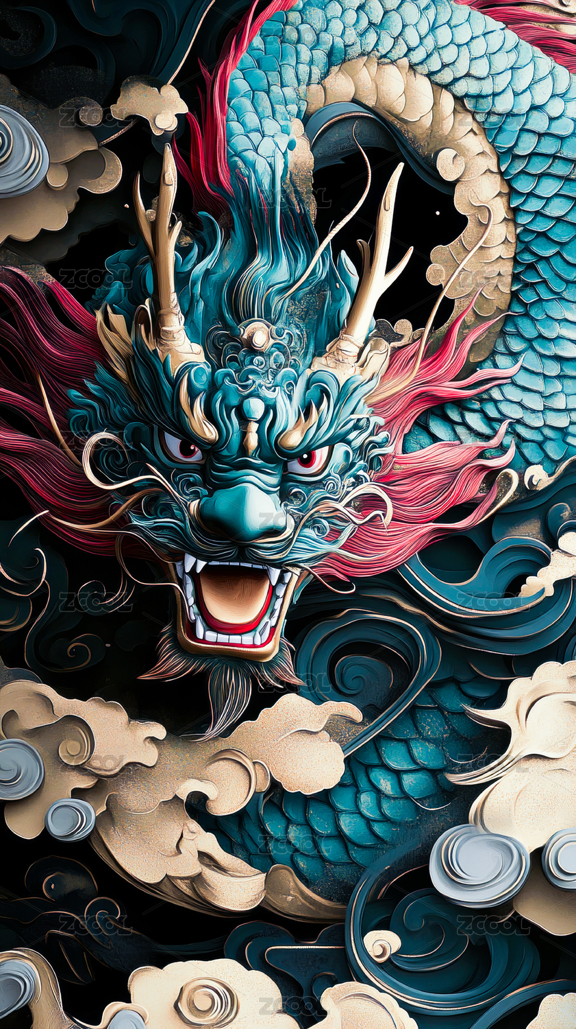 新年龙图腾神兽插画
