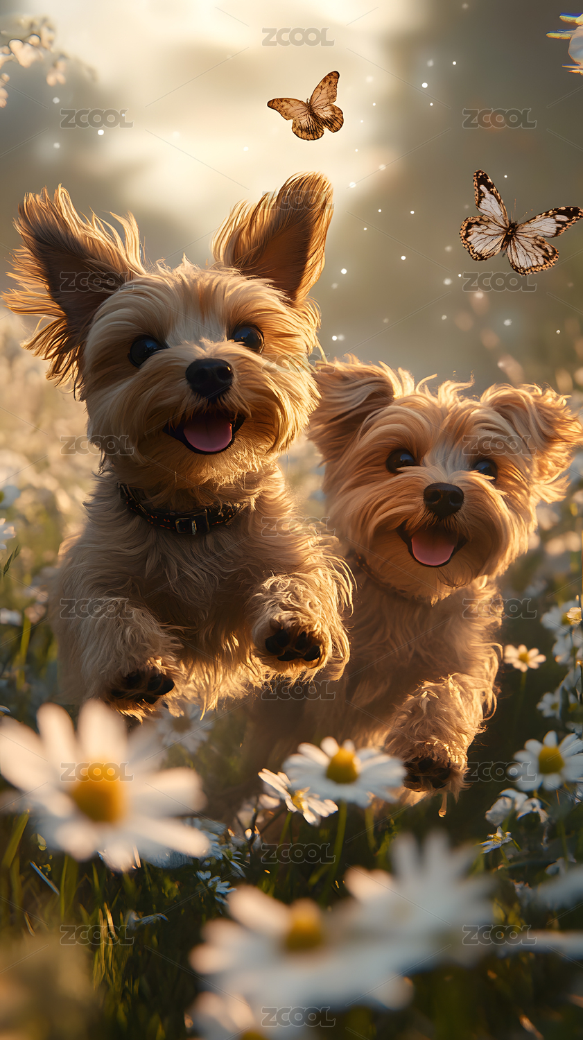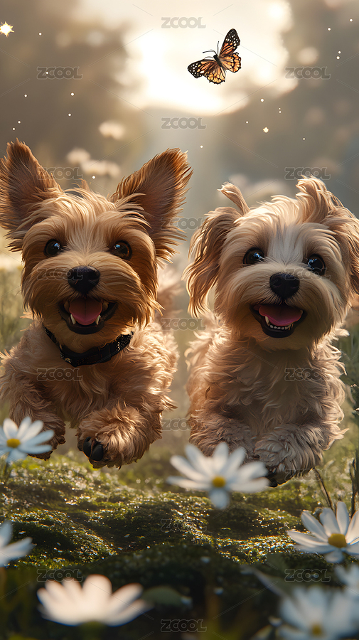 花丛,草地,花,奔跑,小狗,狗,可爱,动物,宠物