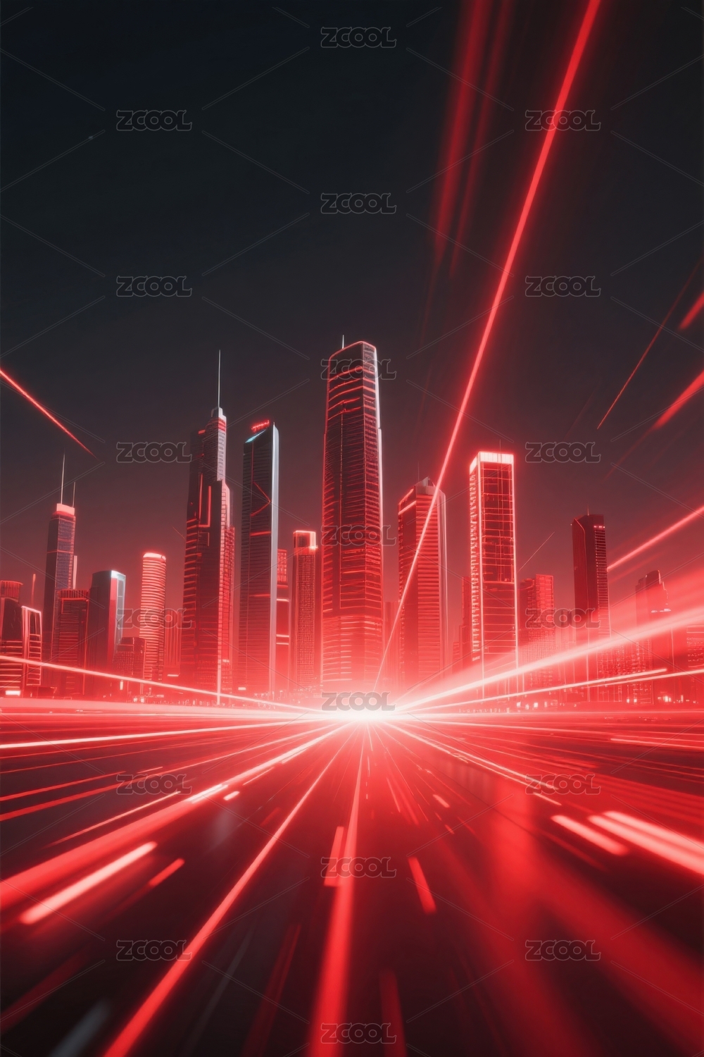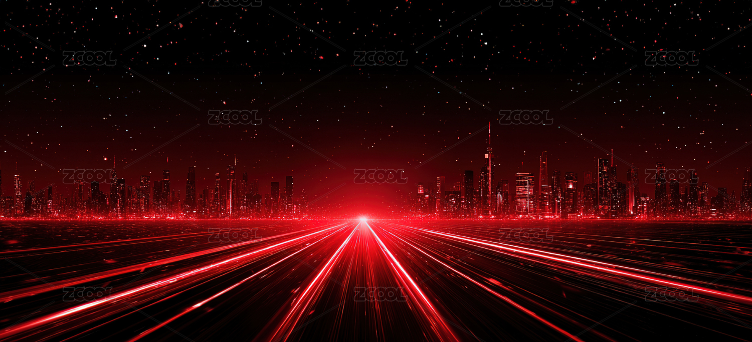 红色光束城市天际线