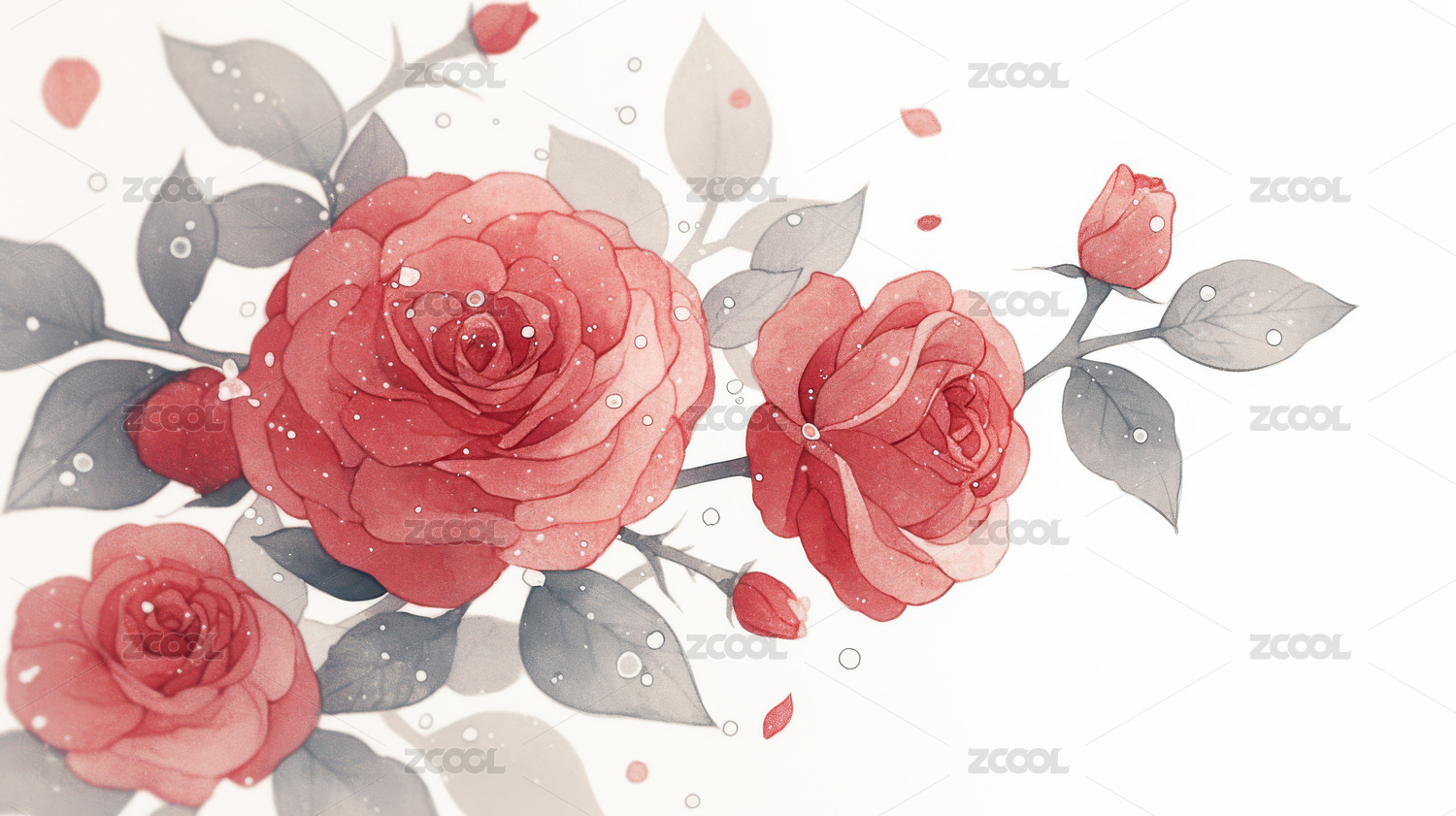玫瑰花水墨背景