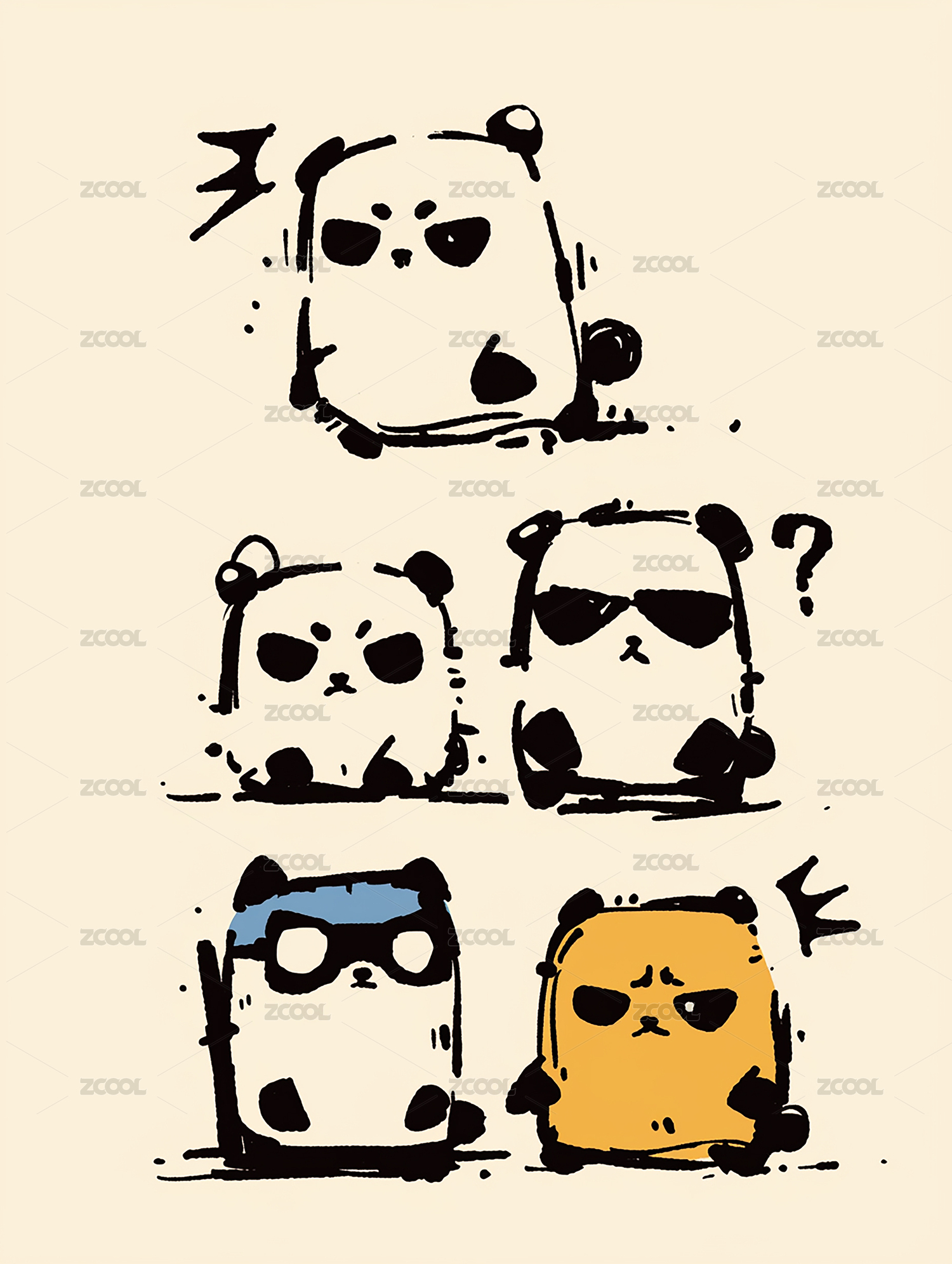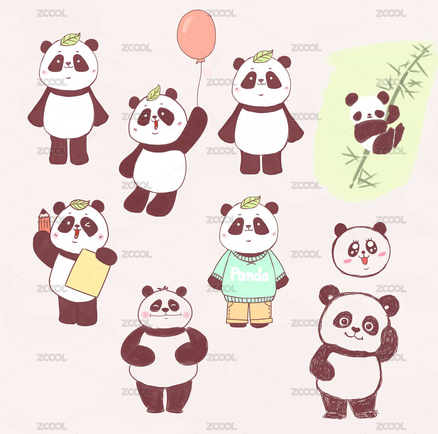 矢量图案可爱熊猫的日常萌态潮流插画元素