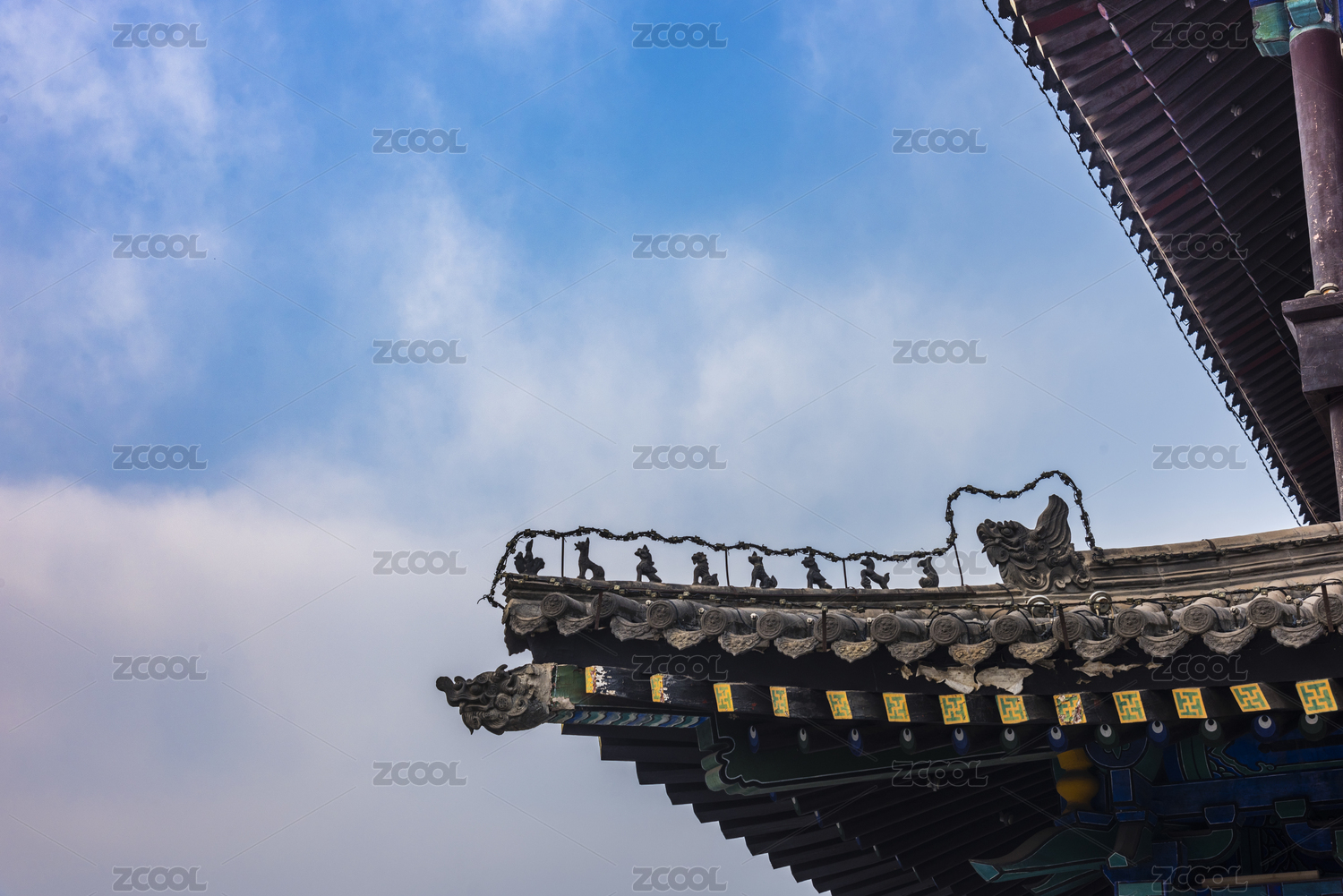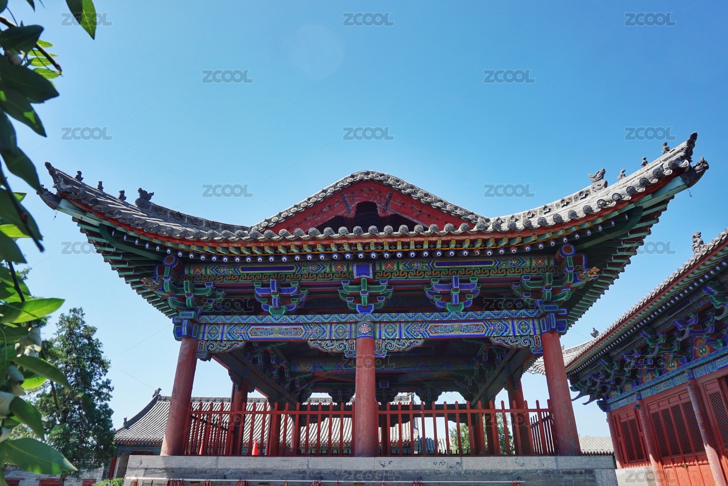 蓝天下北京八大处春日伽蓝殿寺庙风光
