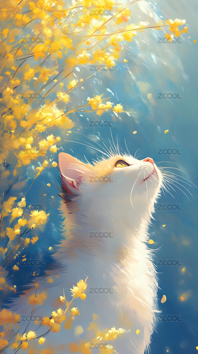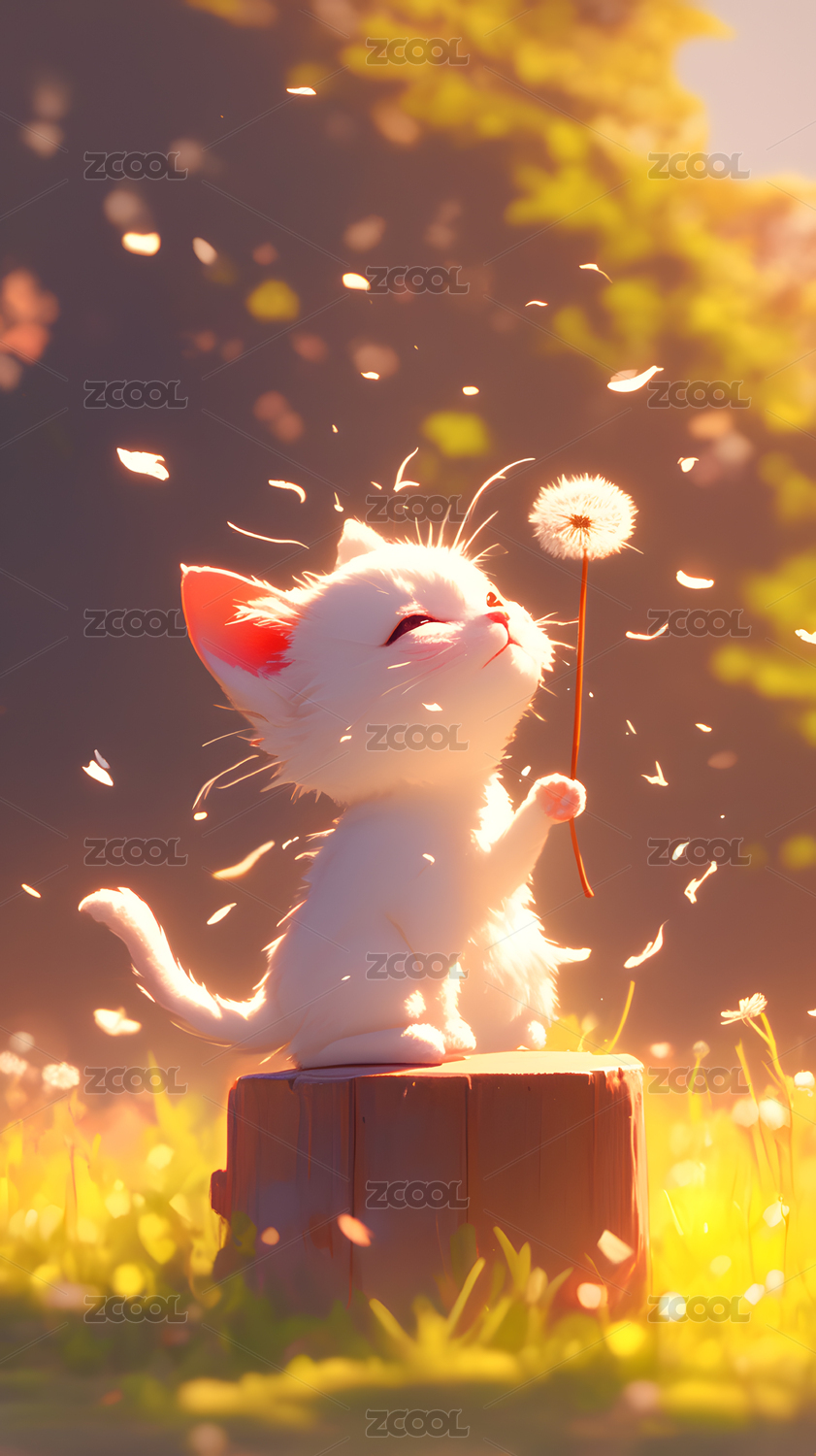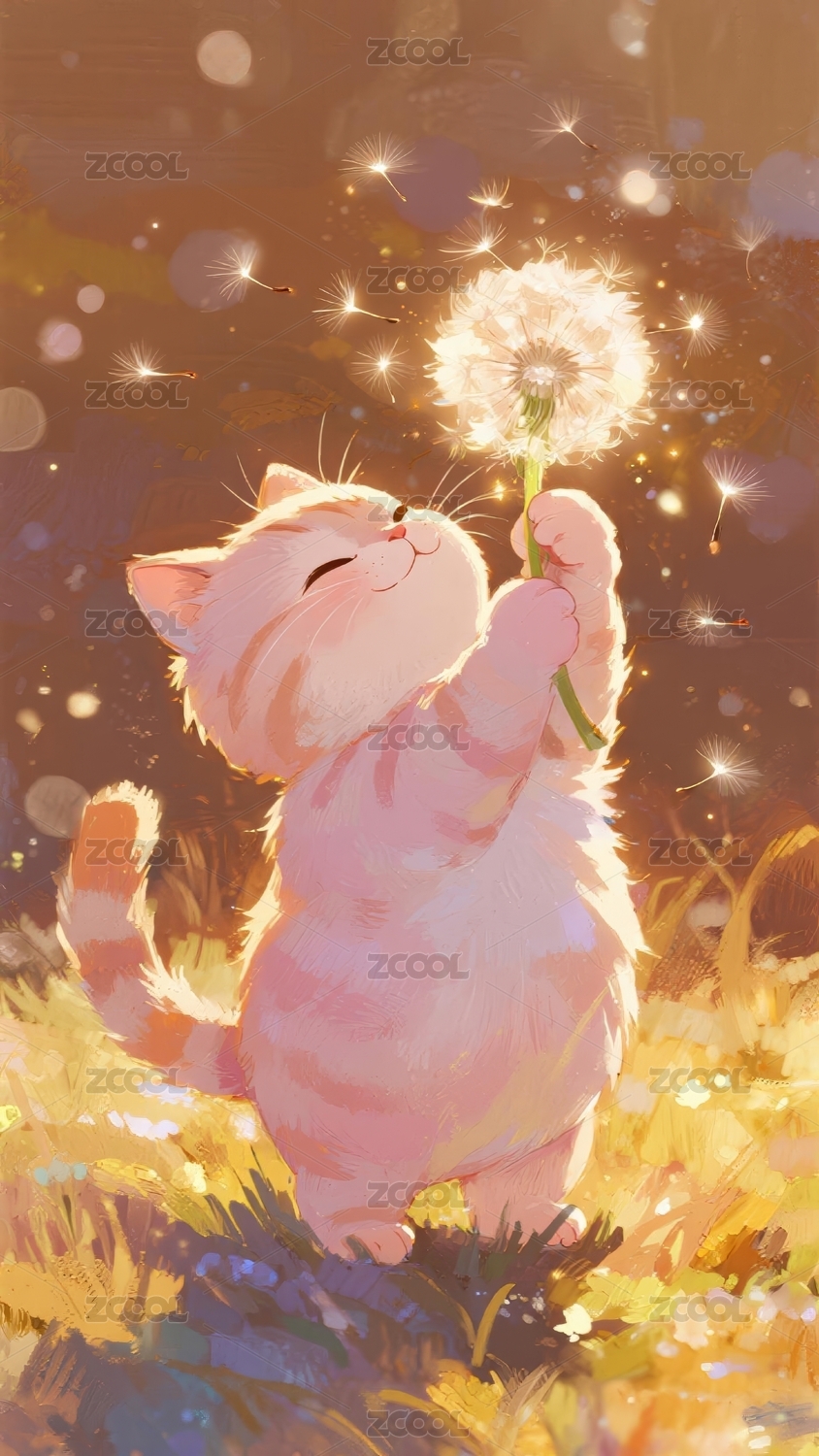 可爱,小猫,猫,宠物,卡通,插画,蒲公英