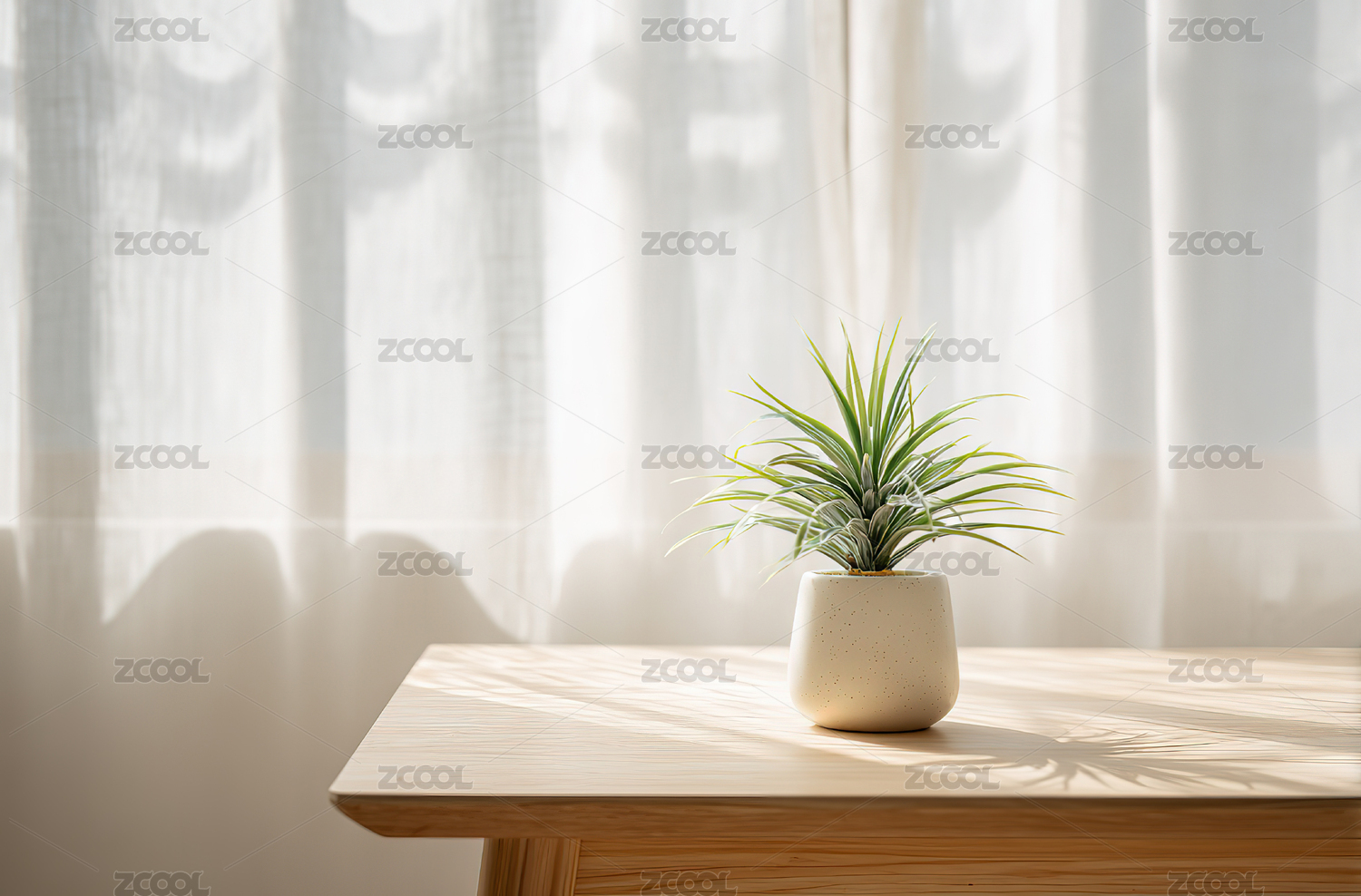 窗边绿植静置木桌