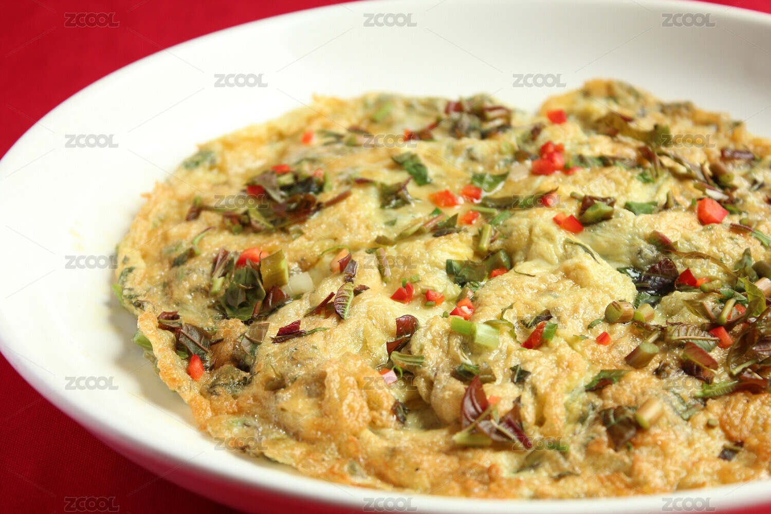 桌面上的盘子里的美味可口的韭菜煎蛋