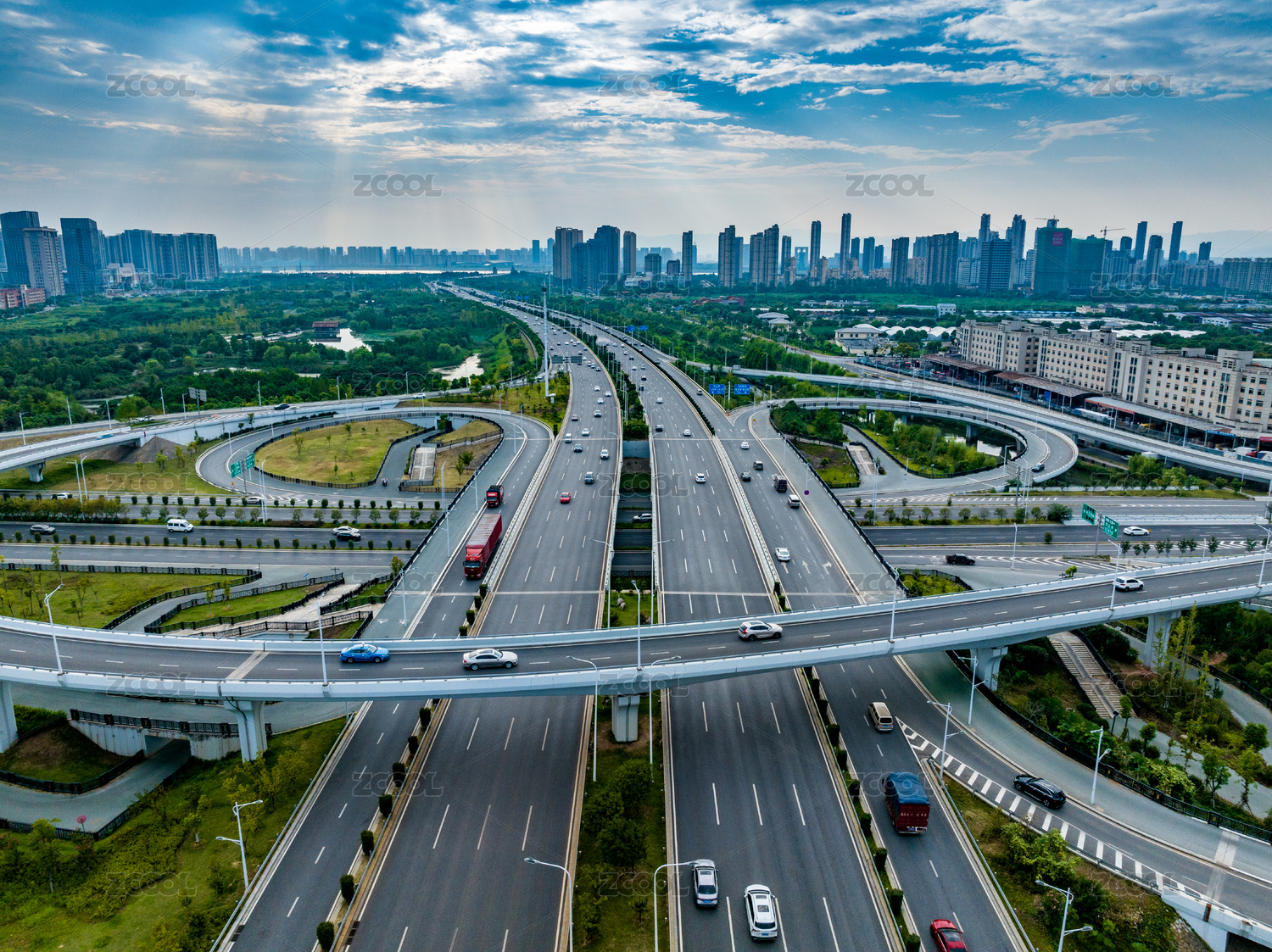 浙江杭州滨江彩虹立交桥城市道路高架航拍