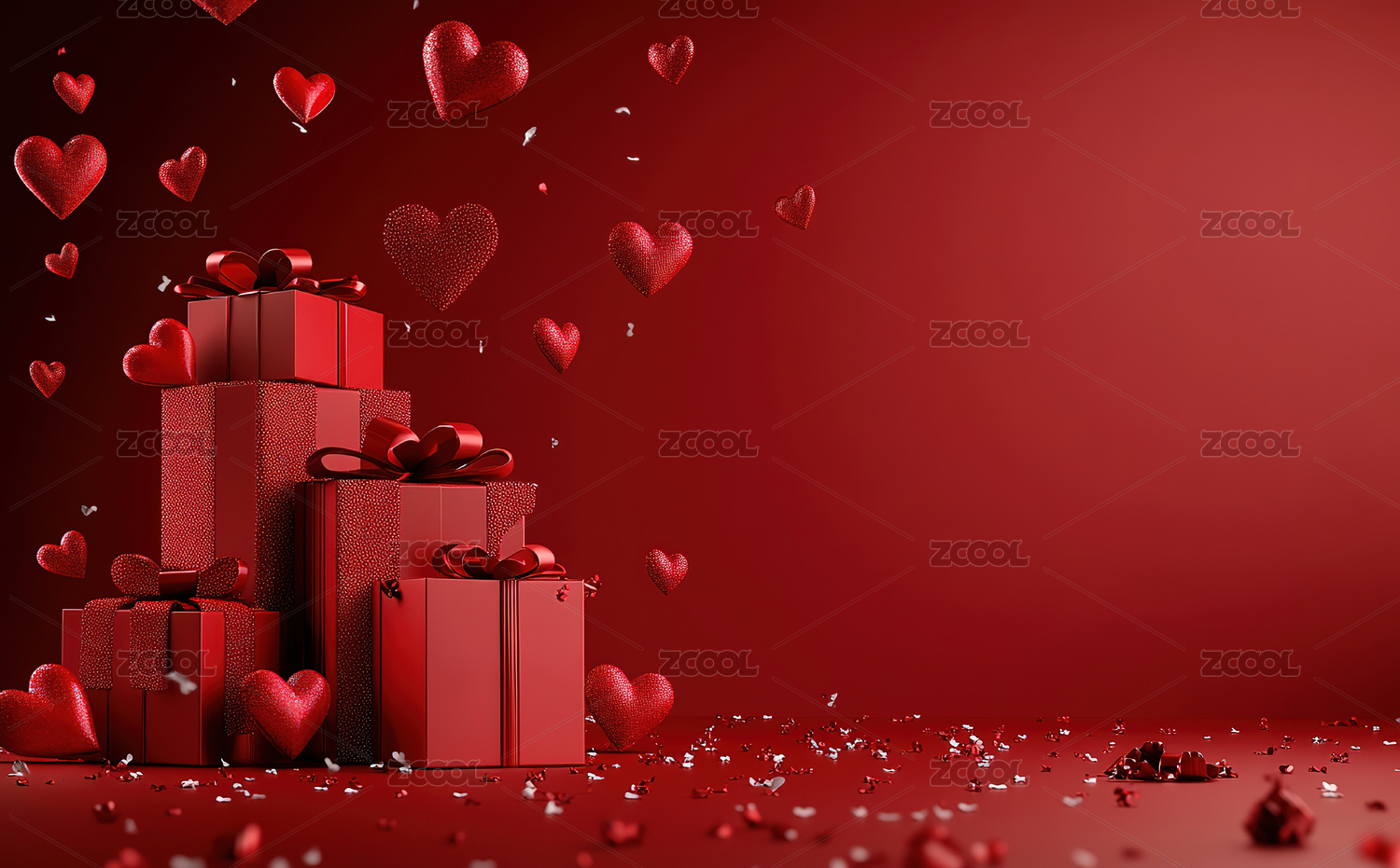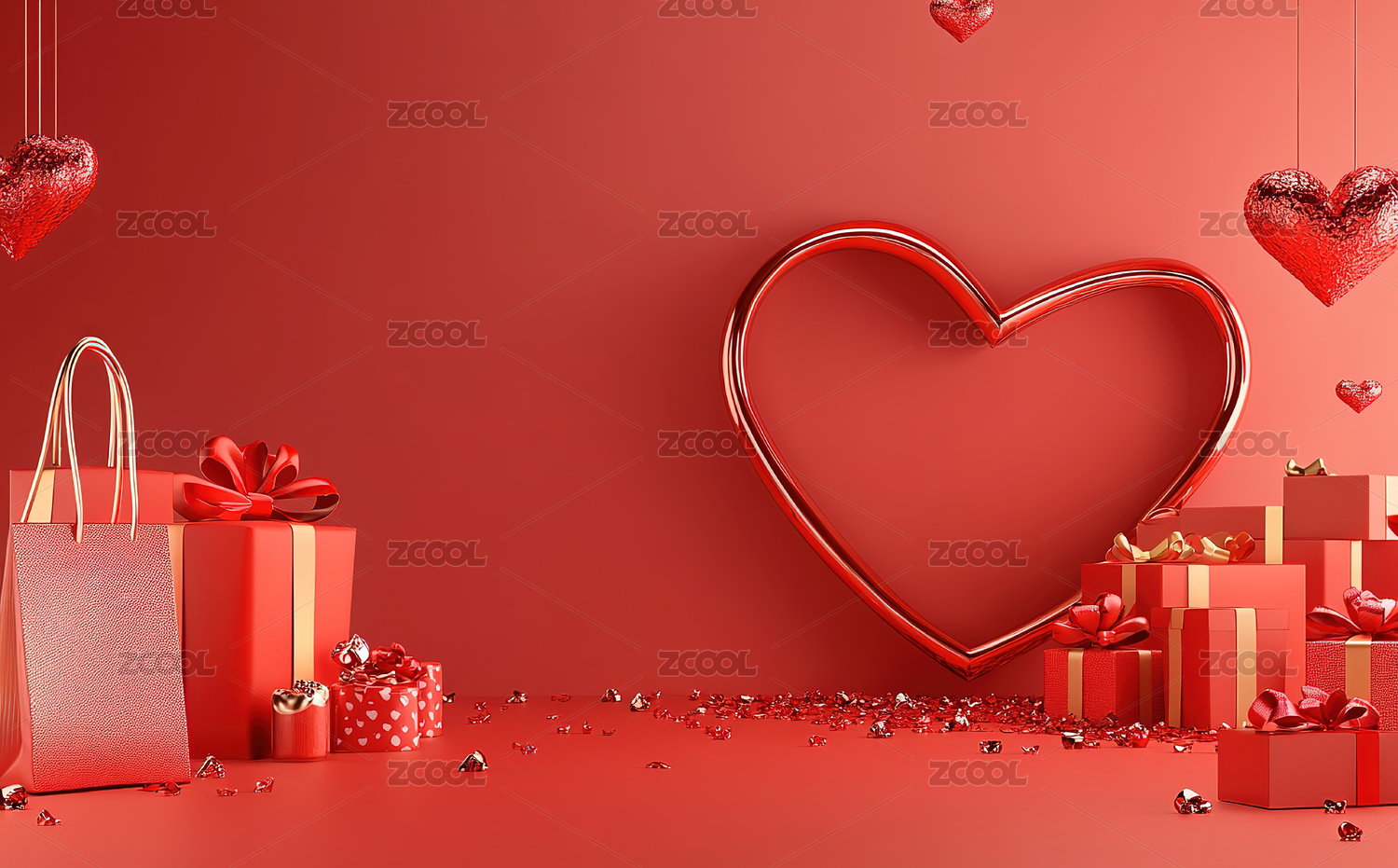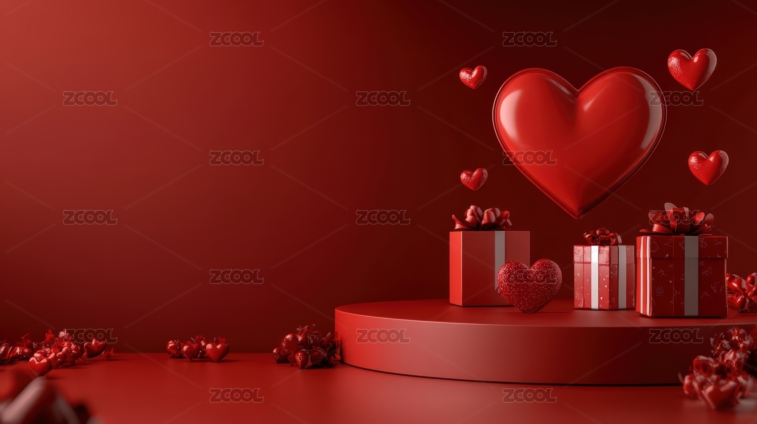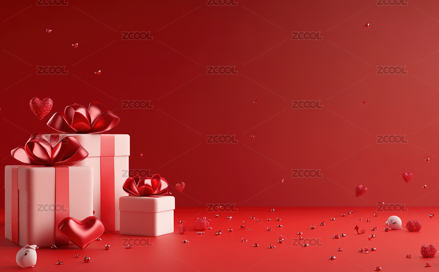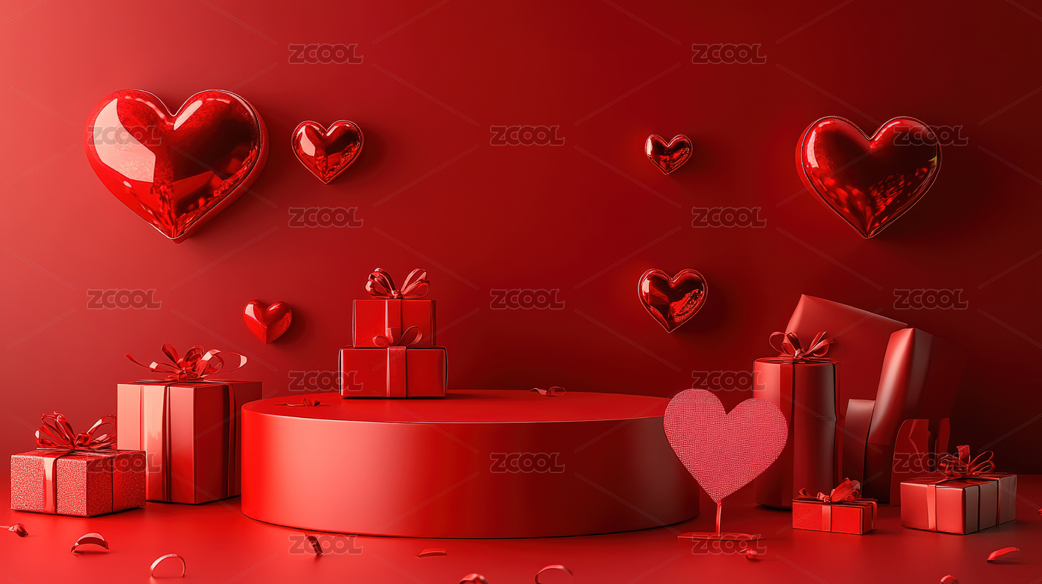 红色背景下的红色心形装饰