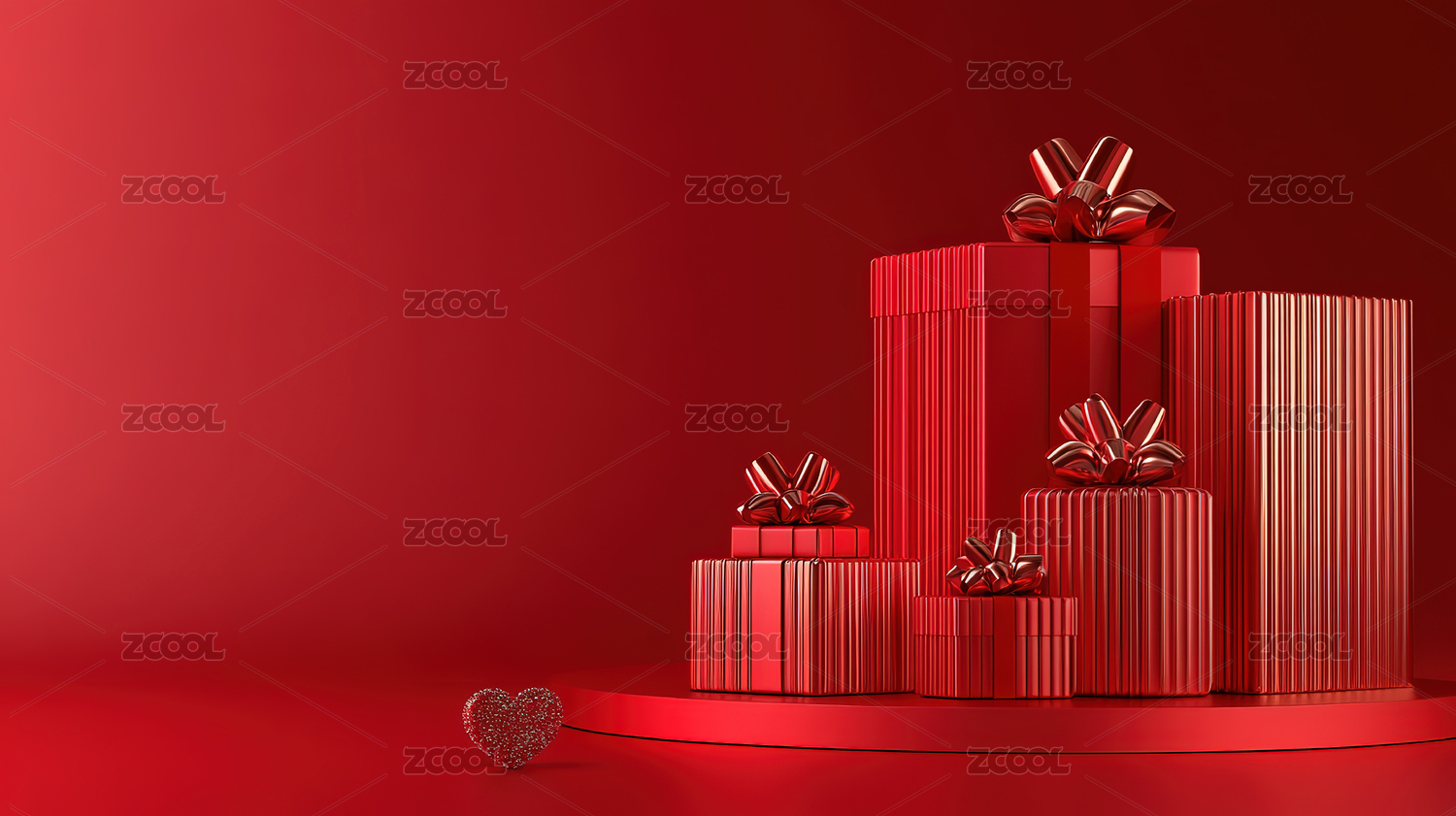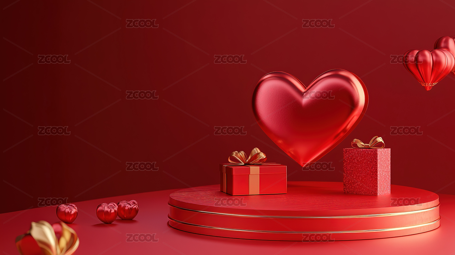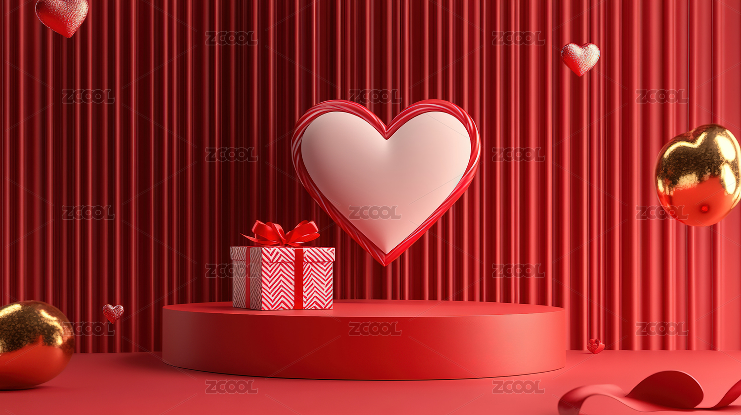红色背景爱心礼物展示