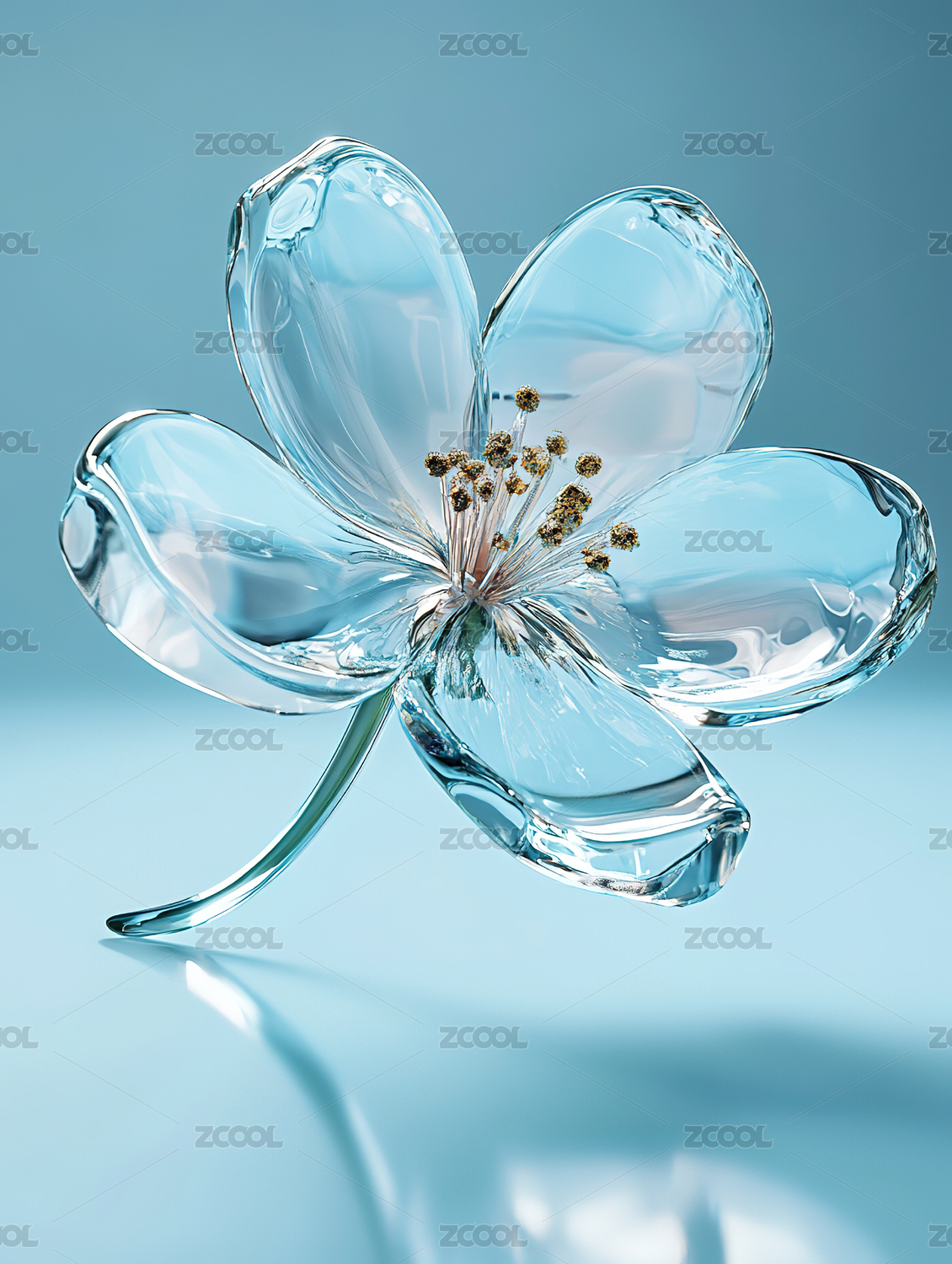 3d透明玻璃感花朵背景