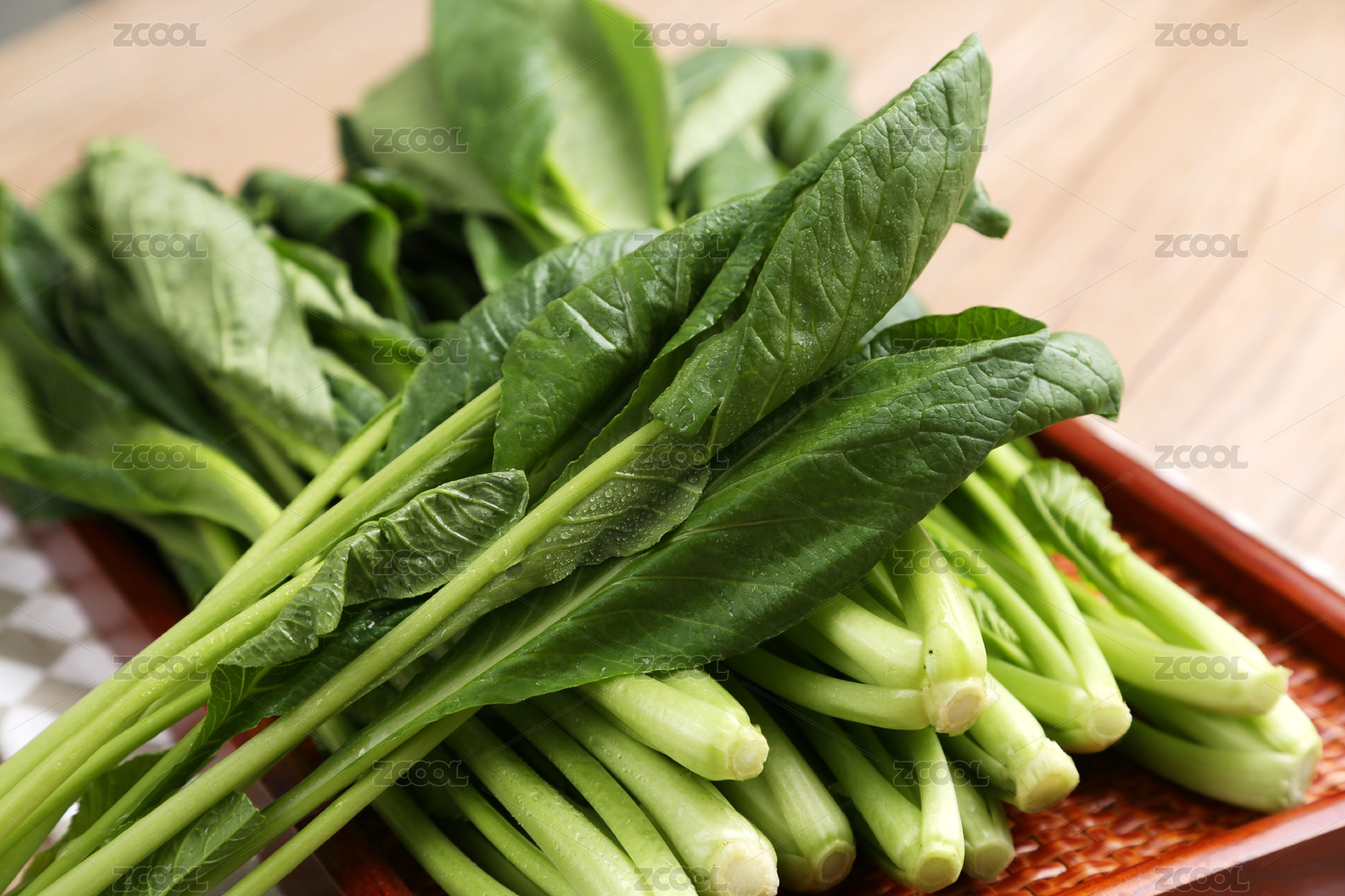 一盘在木板上小松菜