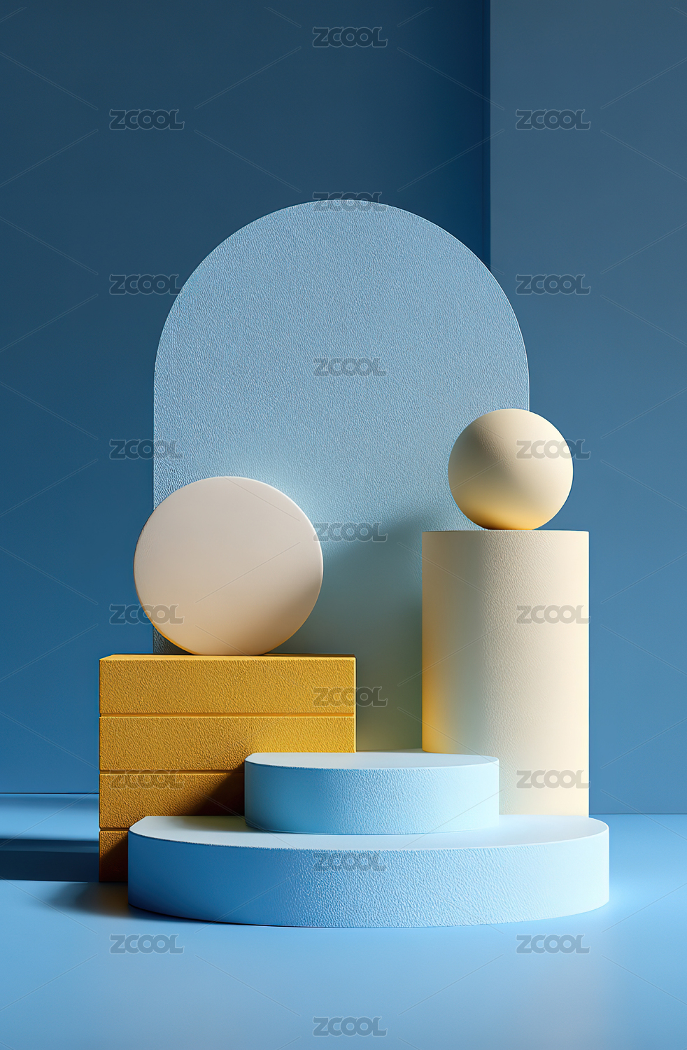 卡通纯色几何产品展台