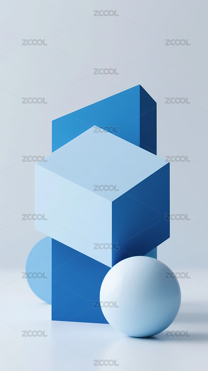 蓝色球体与白色立方体的现代组合