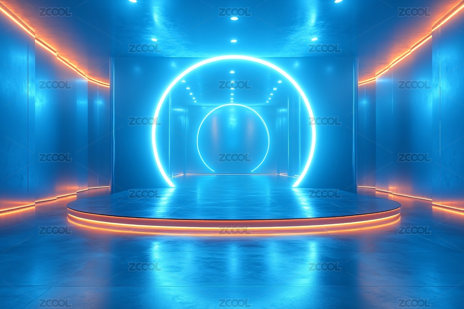 蓝色霓虹灯下的圆形舞台