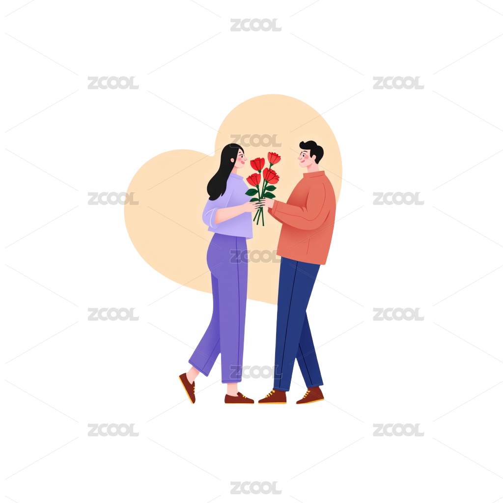 卡通情人节七夕节情侣人物插画