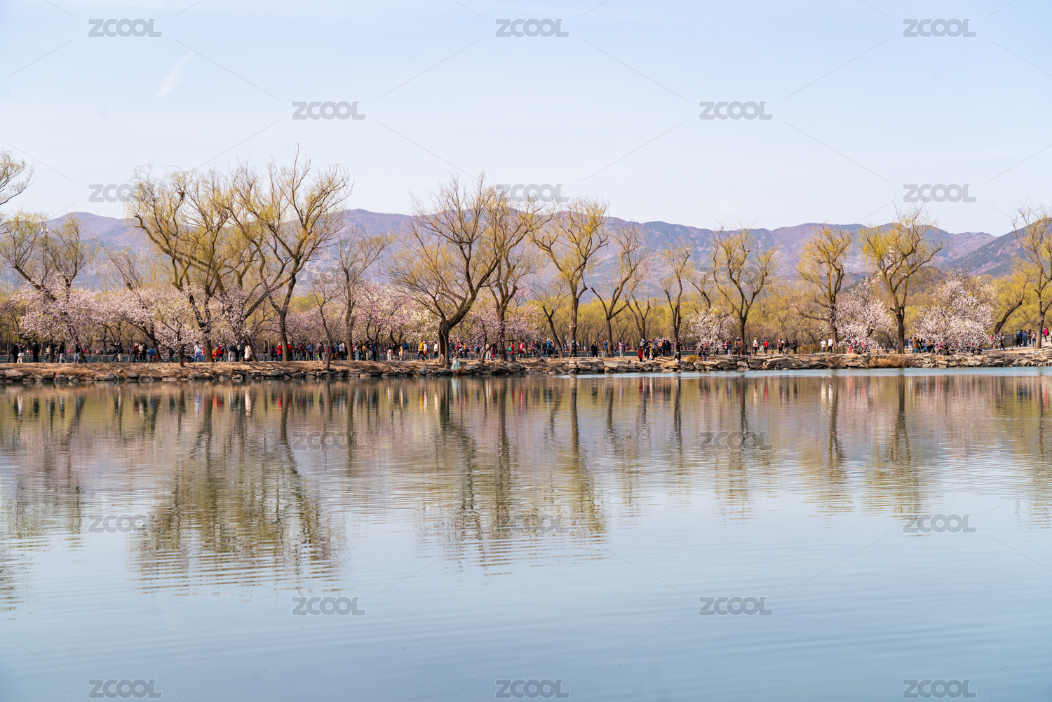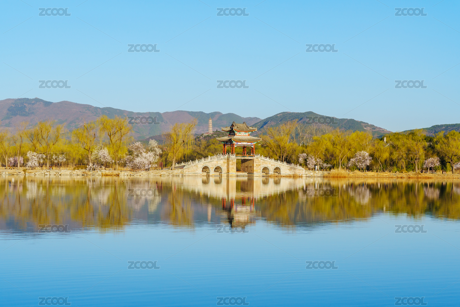 晨阳光下的颐和园西堤练桥与玉泉山玉峰塔