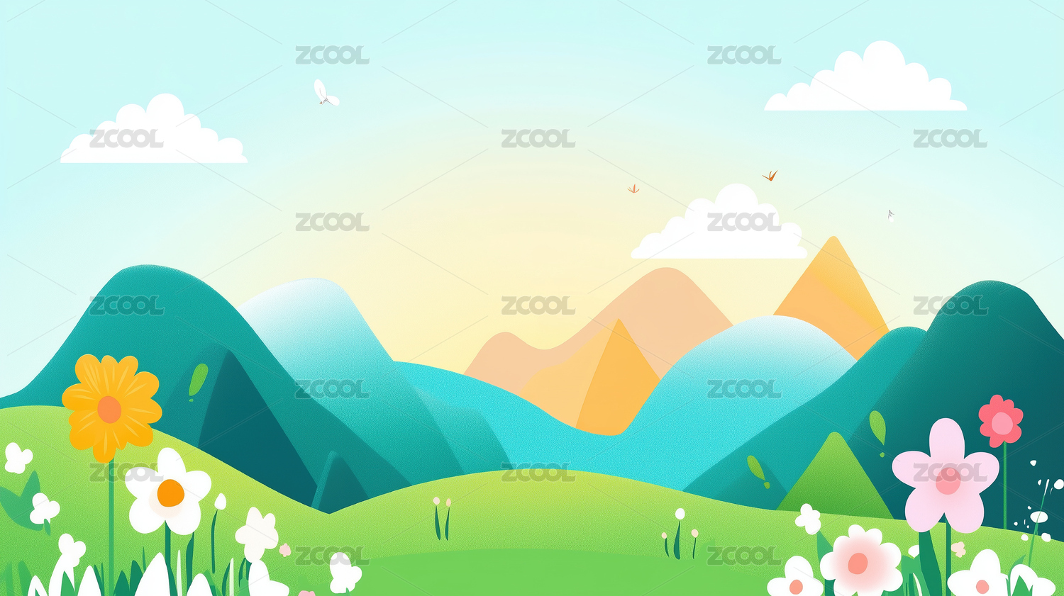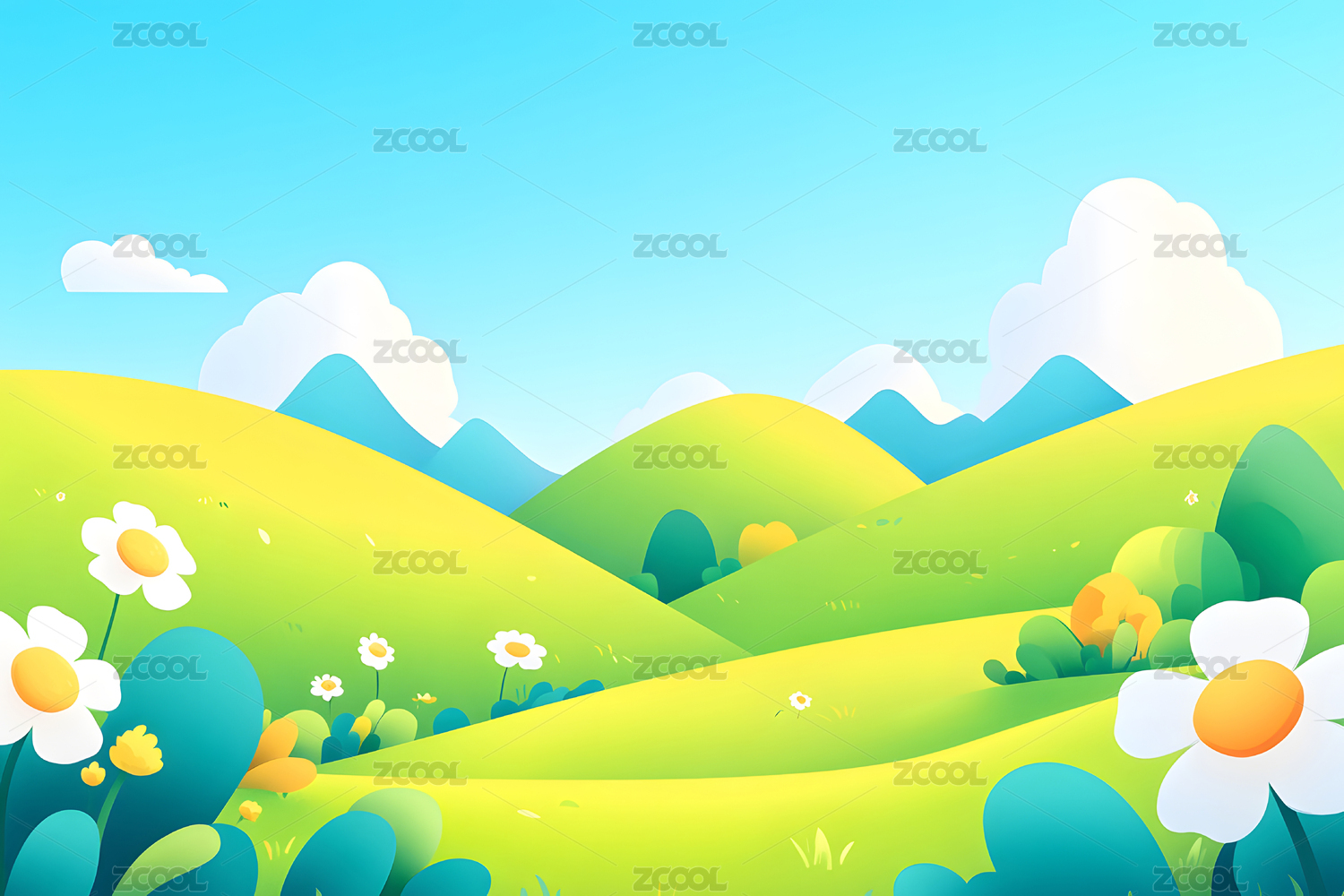 春天草地背景插画
