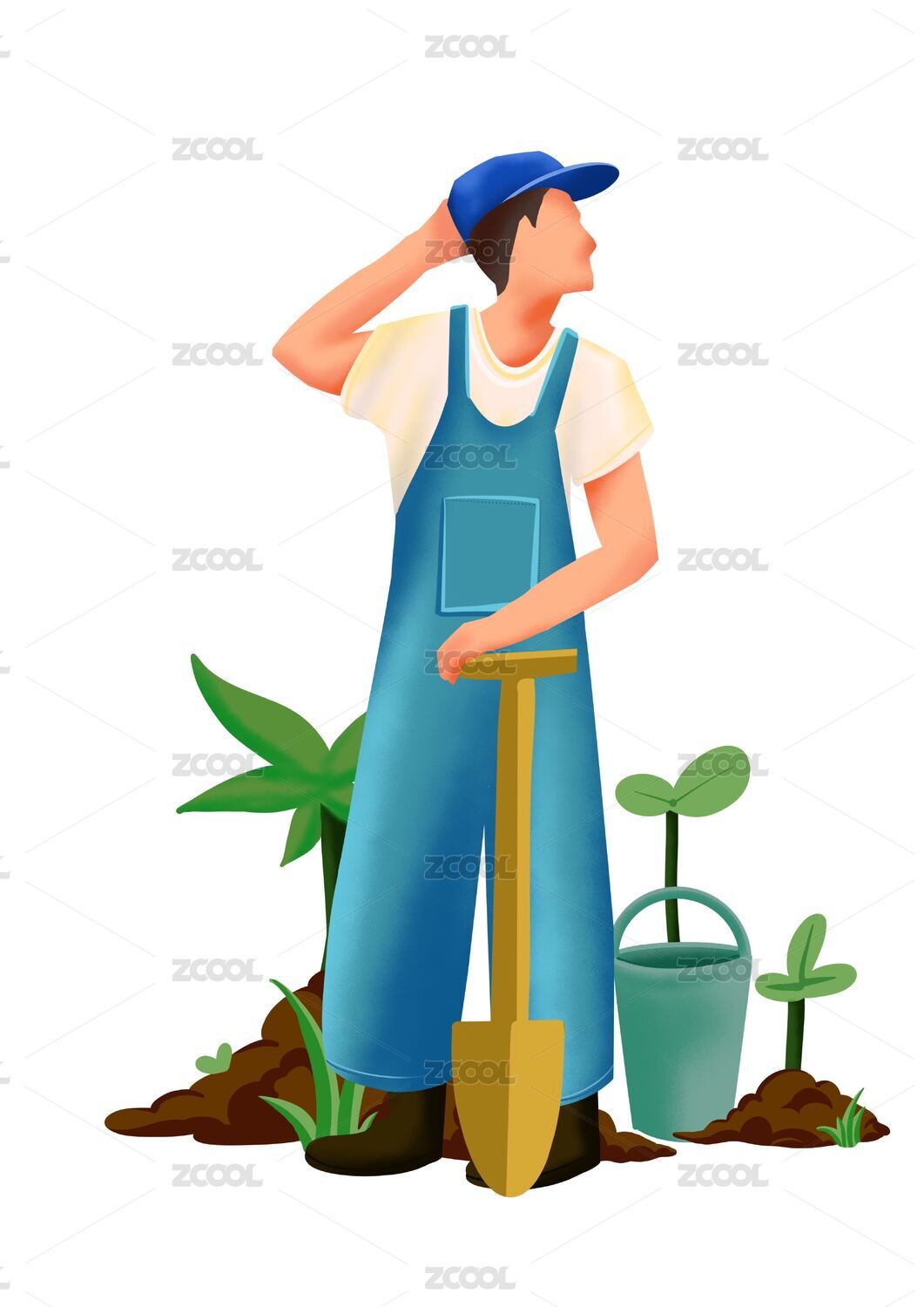 五一劳动节农村农民辛勤劳作农耕收获插画