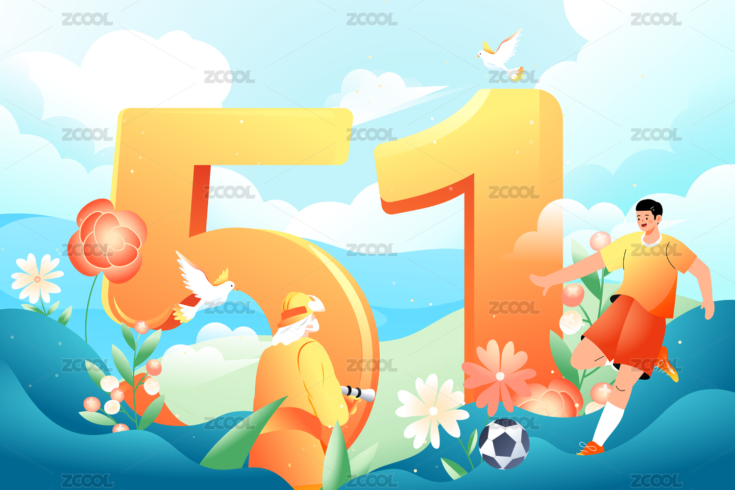 五四青年节青春活泼快乐年轻人跳跃庆祝插画