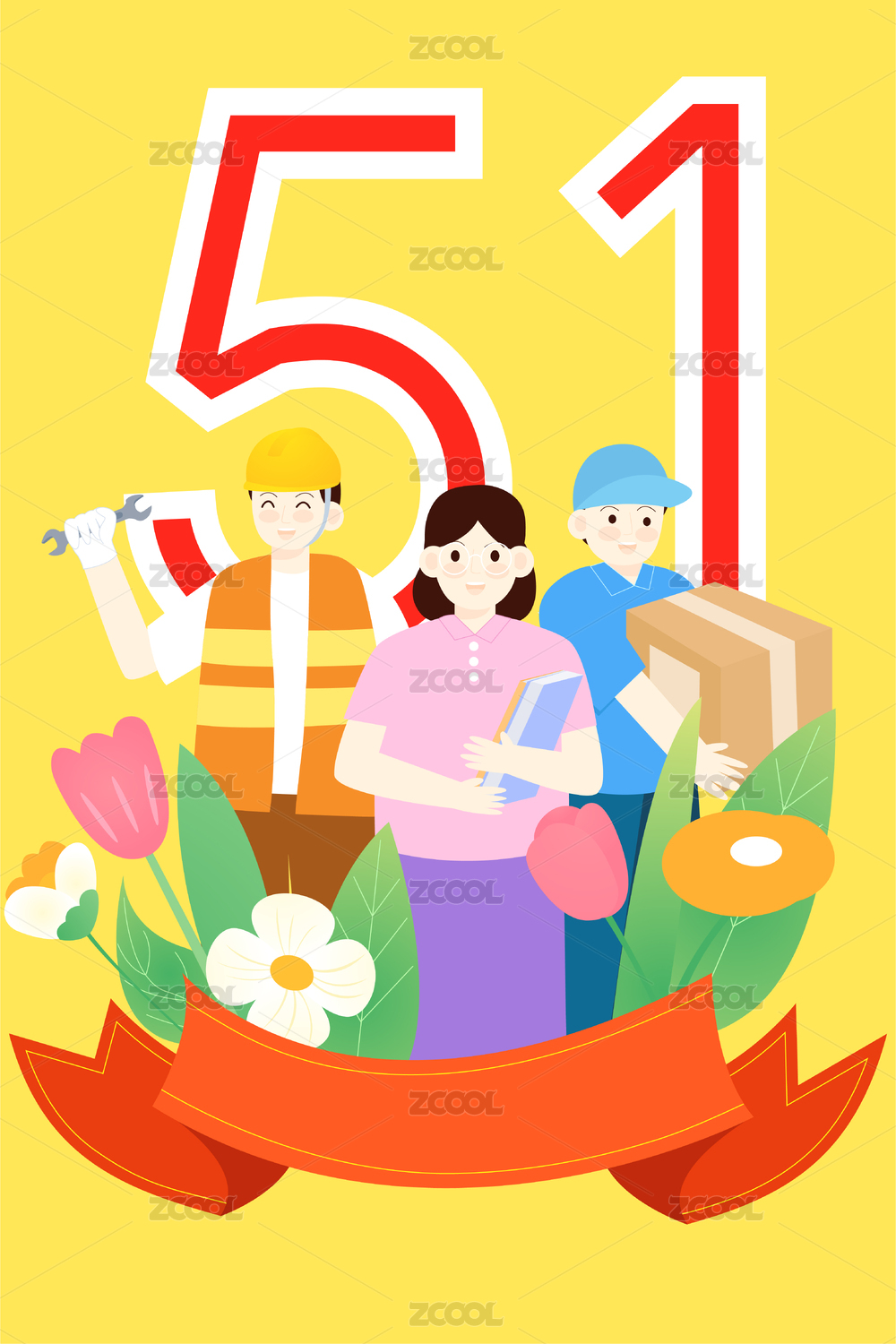 卡通节日五一劳动节消防员工人扁平矢量插画