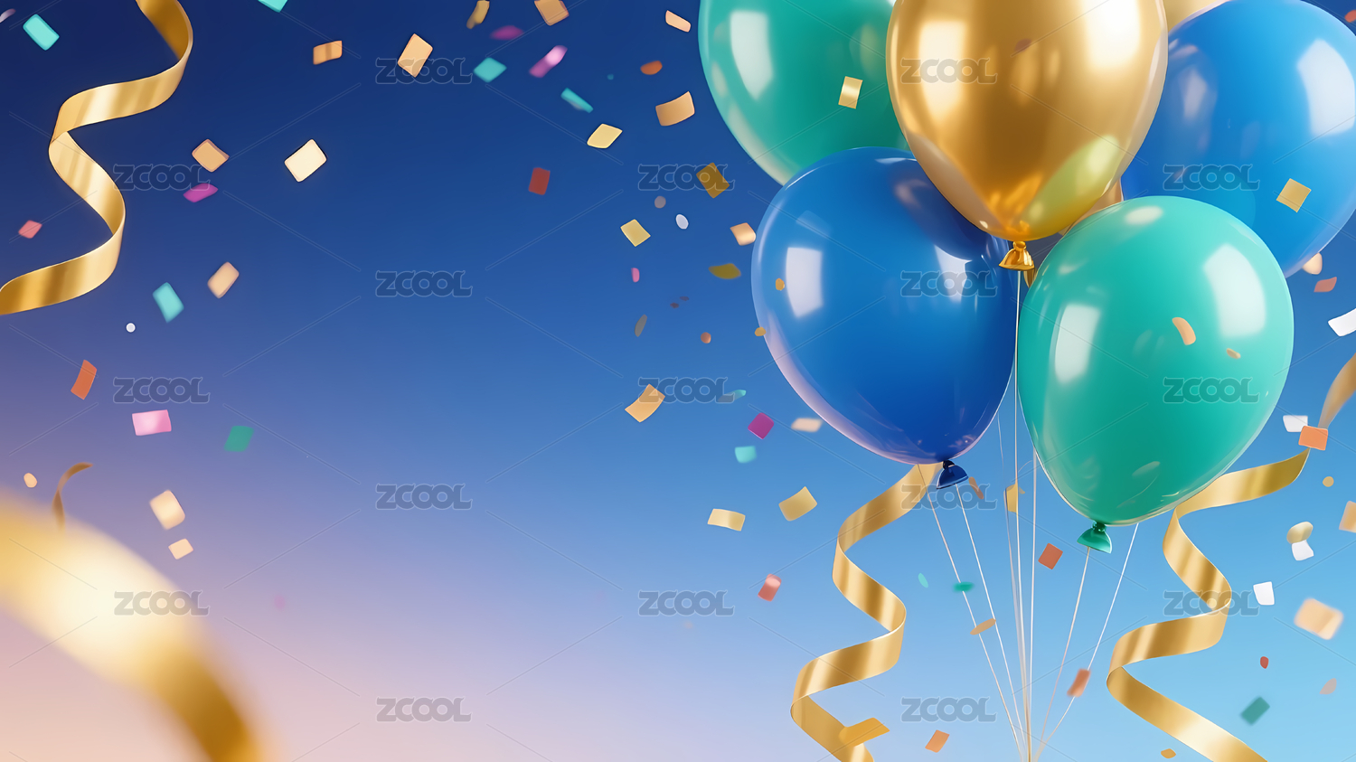 粉色背景,充满五彩纸屑彩带和粉色气球的节