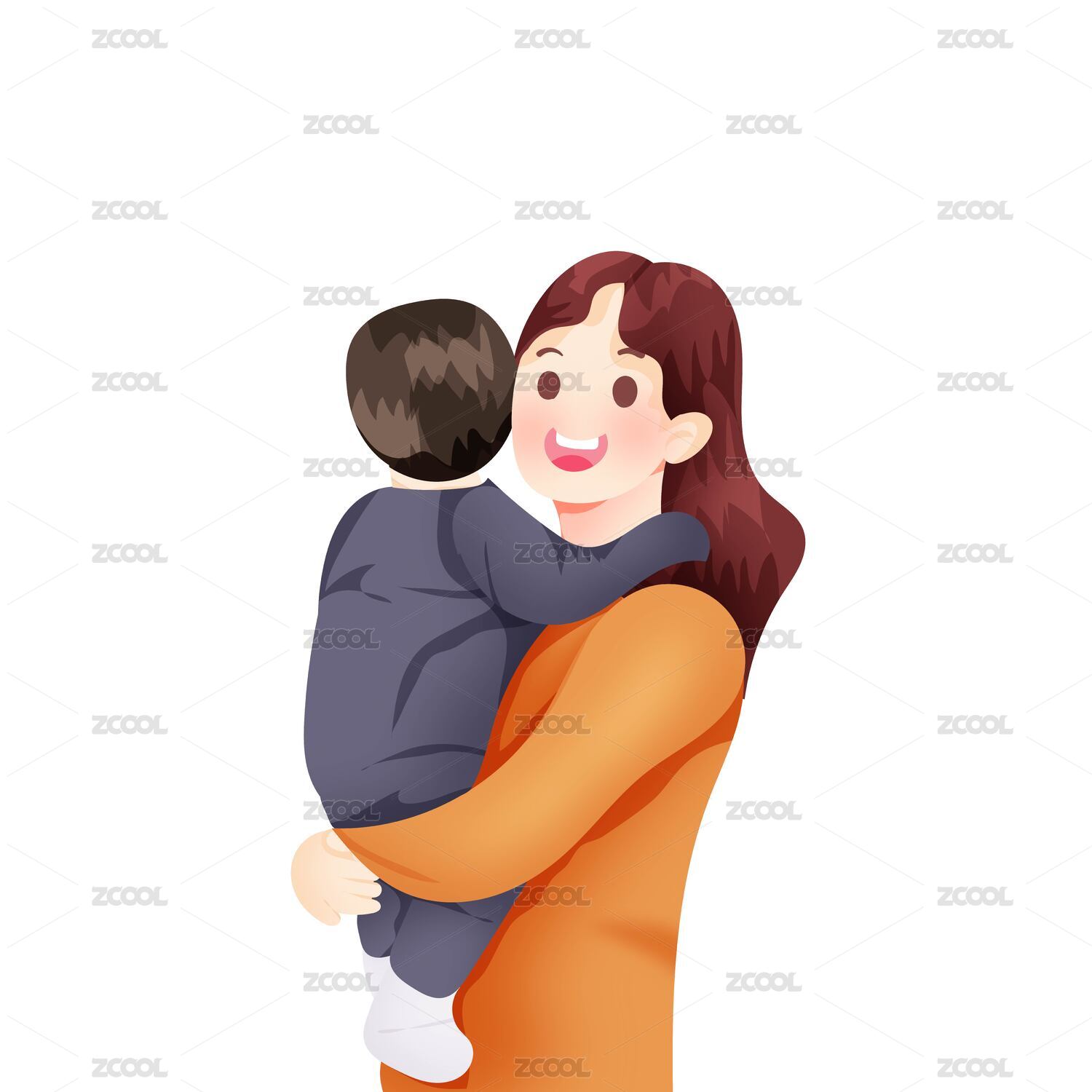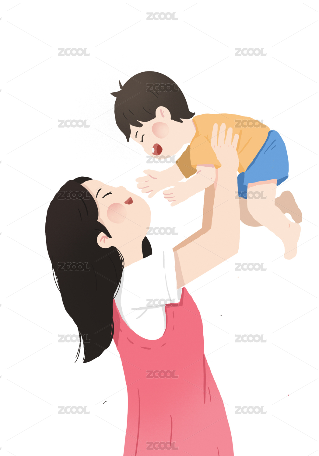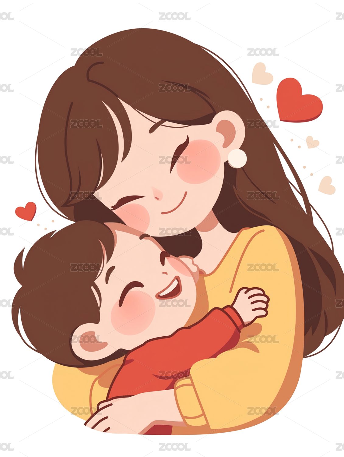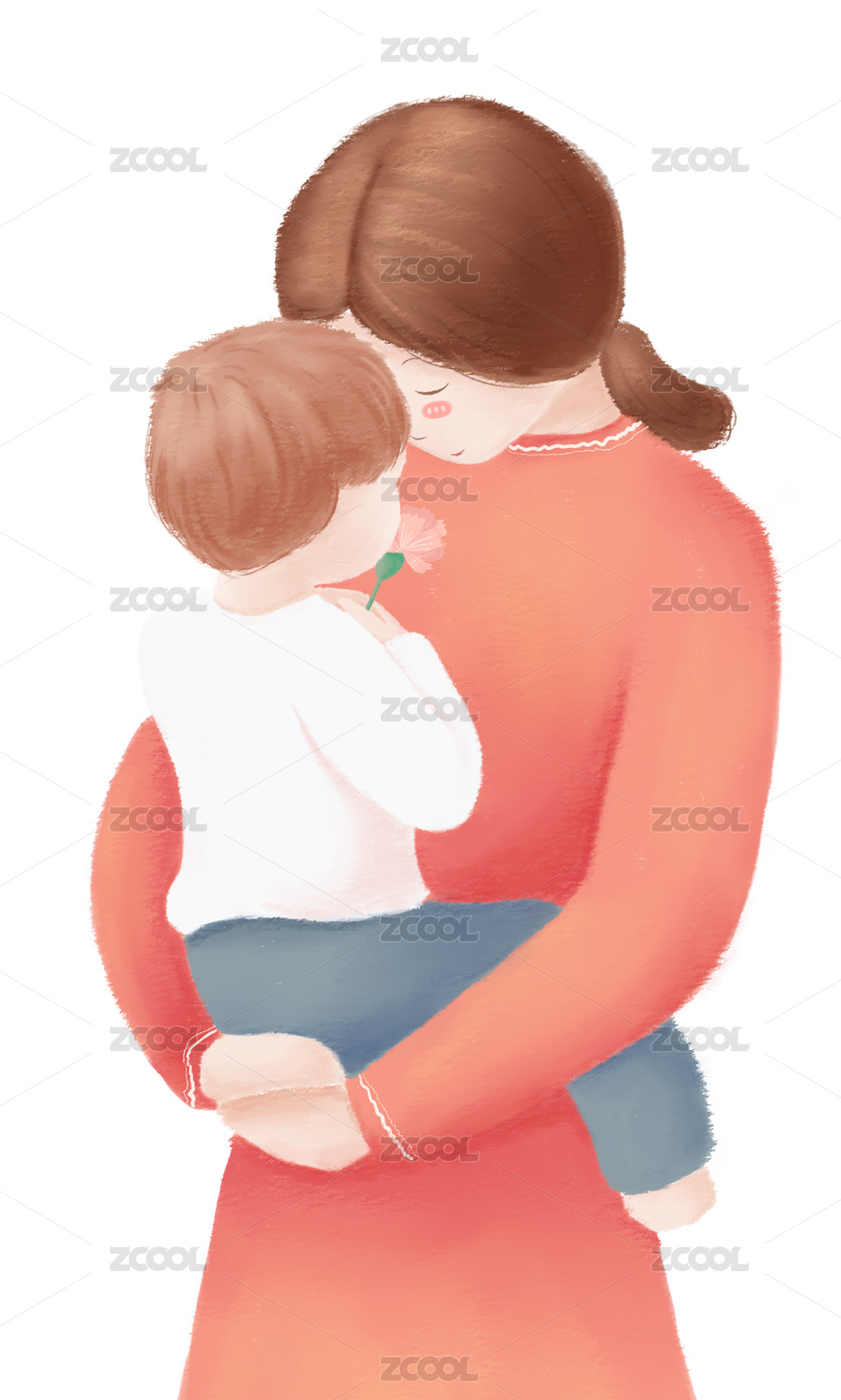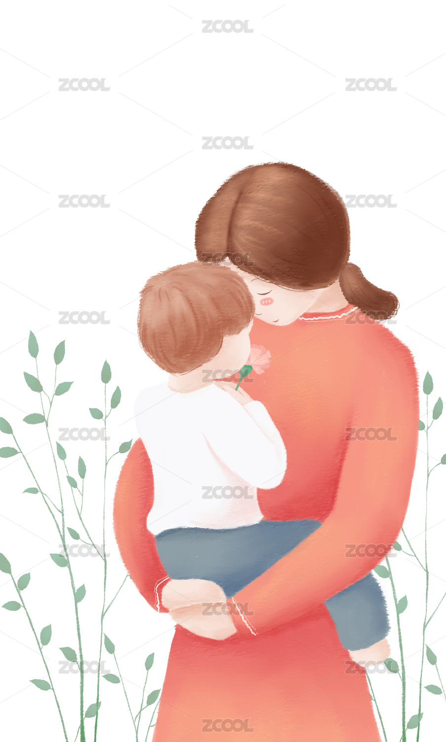 手绘,卡通,母亲节,插画,母子,家庭,温馨,母爱,妈妈
