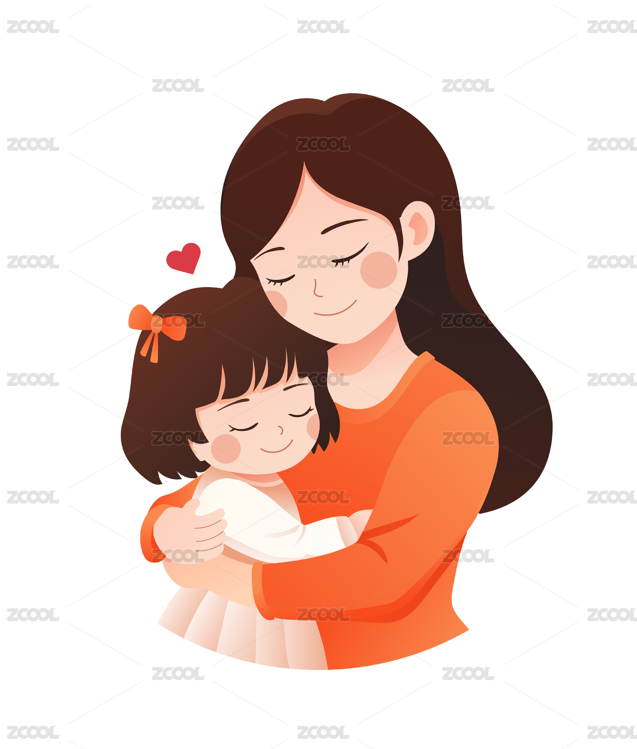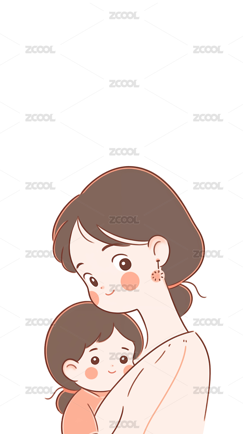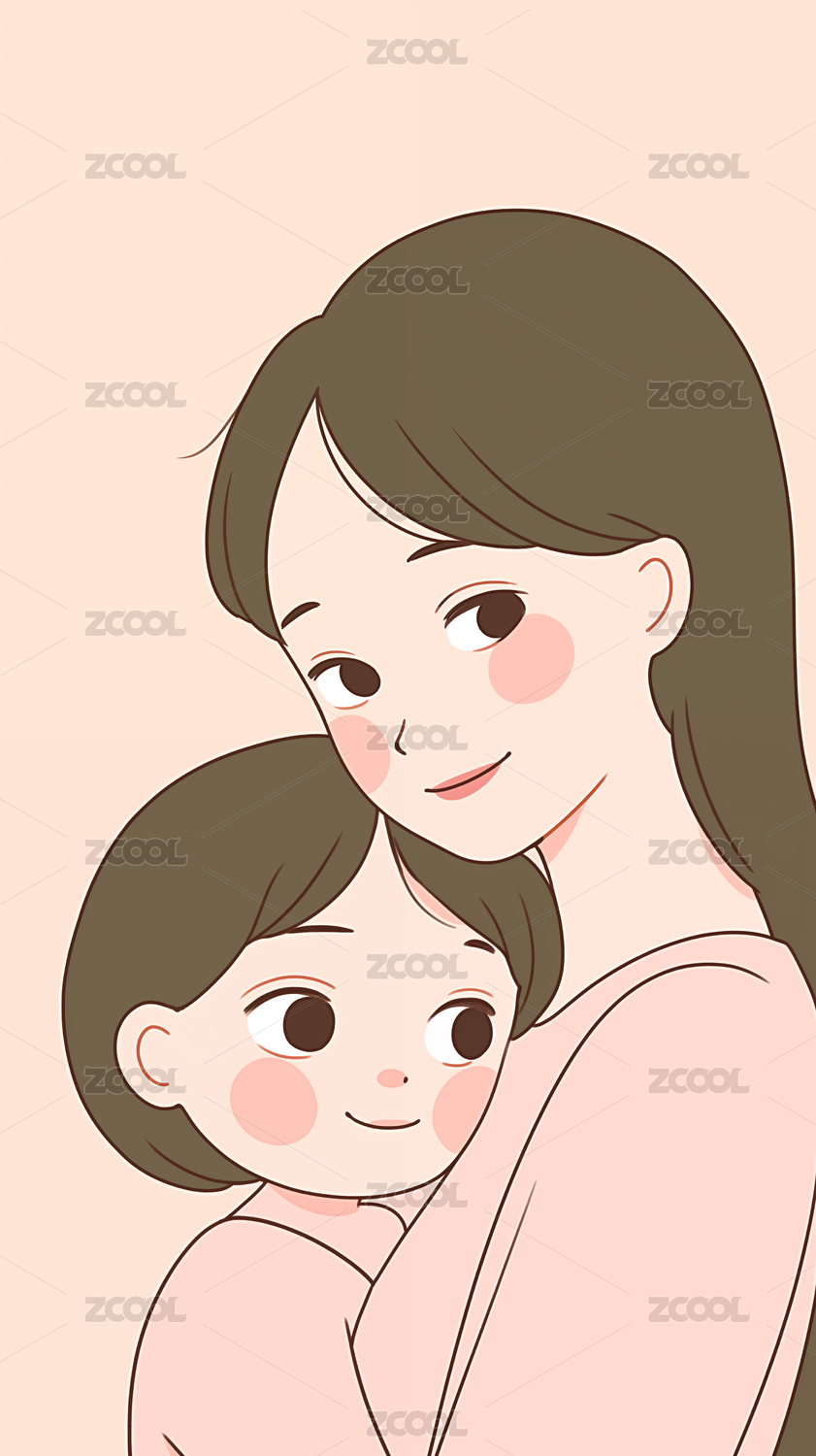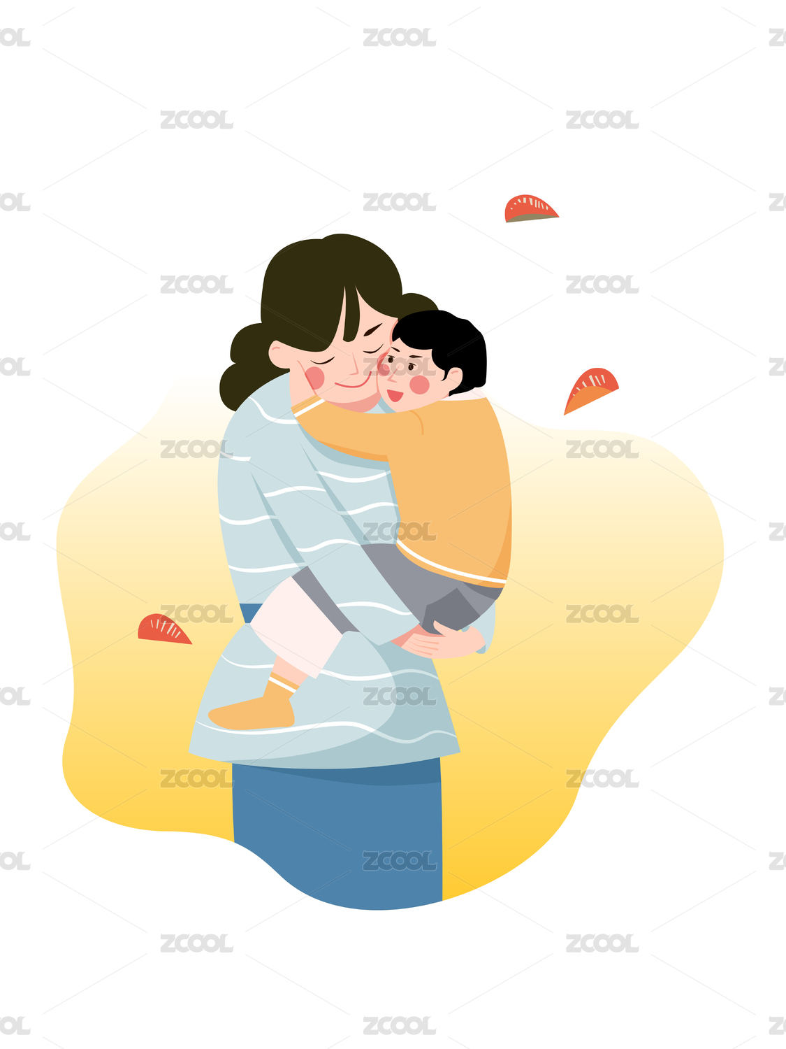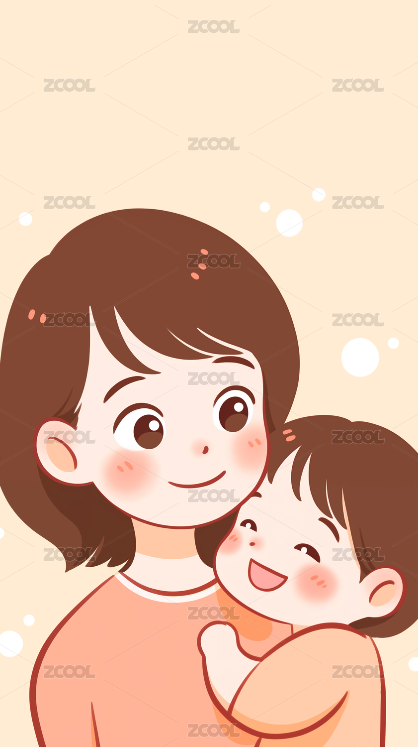 手绘,卡通,母亲节,插画,母子,家庭,温馨,母爱,妈妈