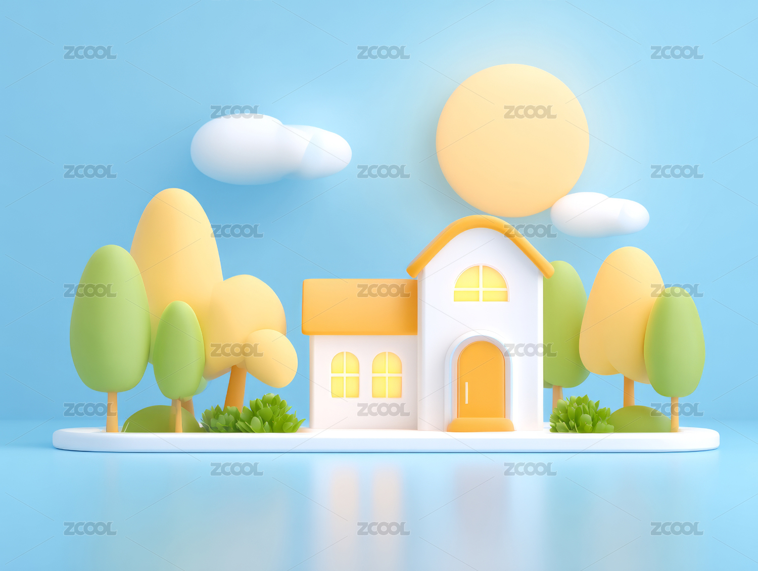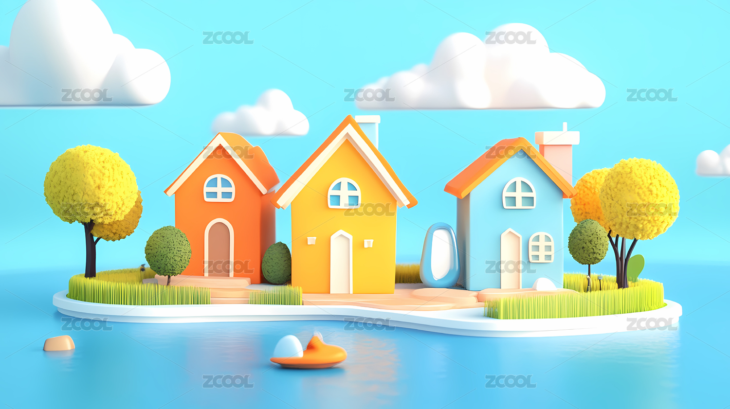 建筑,城市,城镇,三维,3D,景观,插图,街道,等距,房子