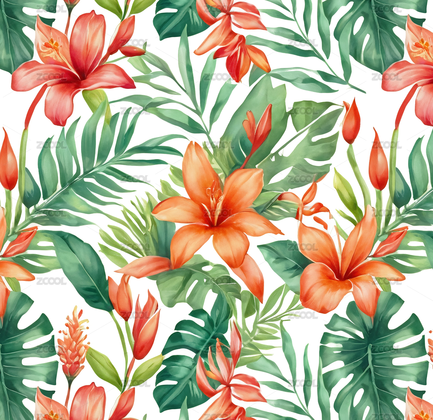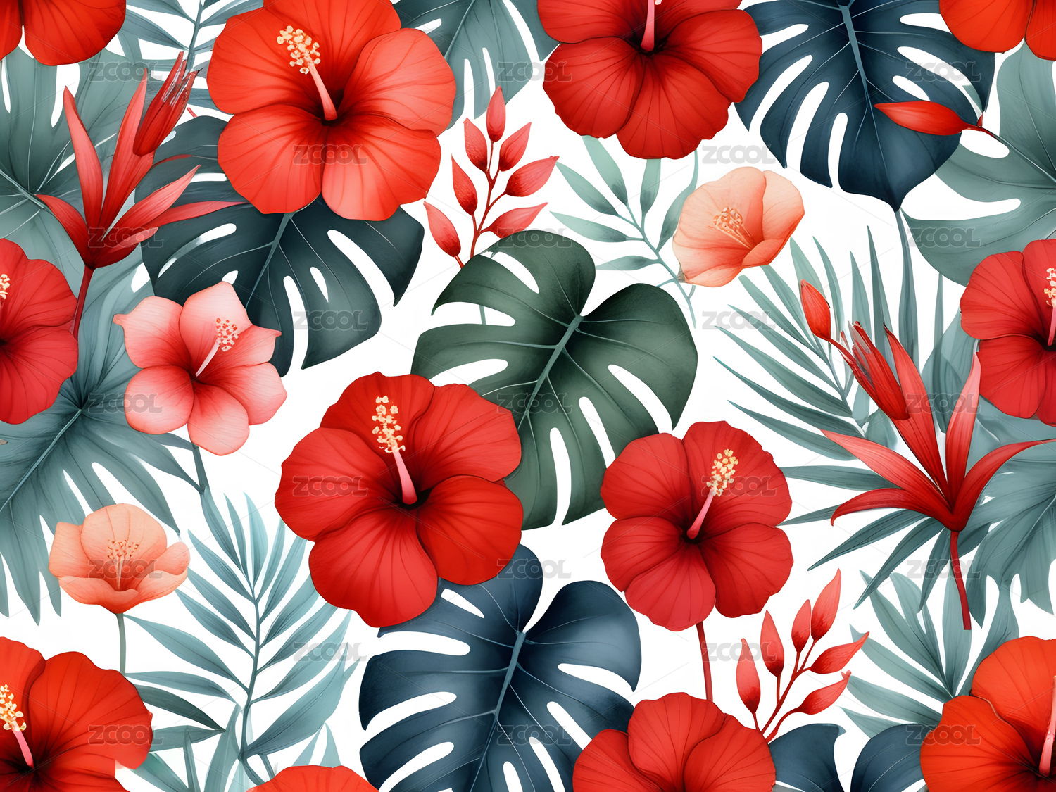 叶子,花朵,无缝,绿色,水彩,热带,印花,图案,插画,素材