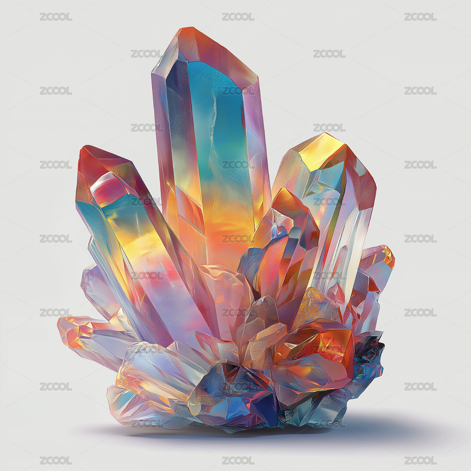 水彩,纯净,晶体,水晶,宝石,元素,透明,清澈,晶簇,聚集