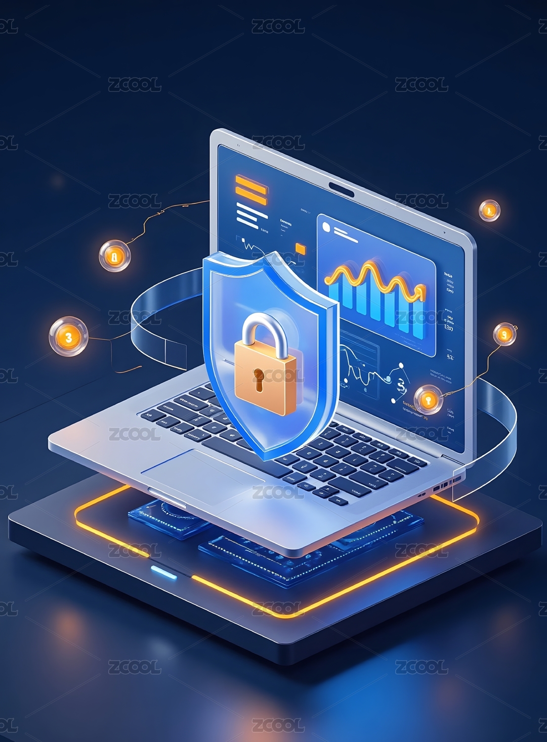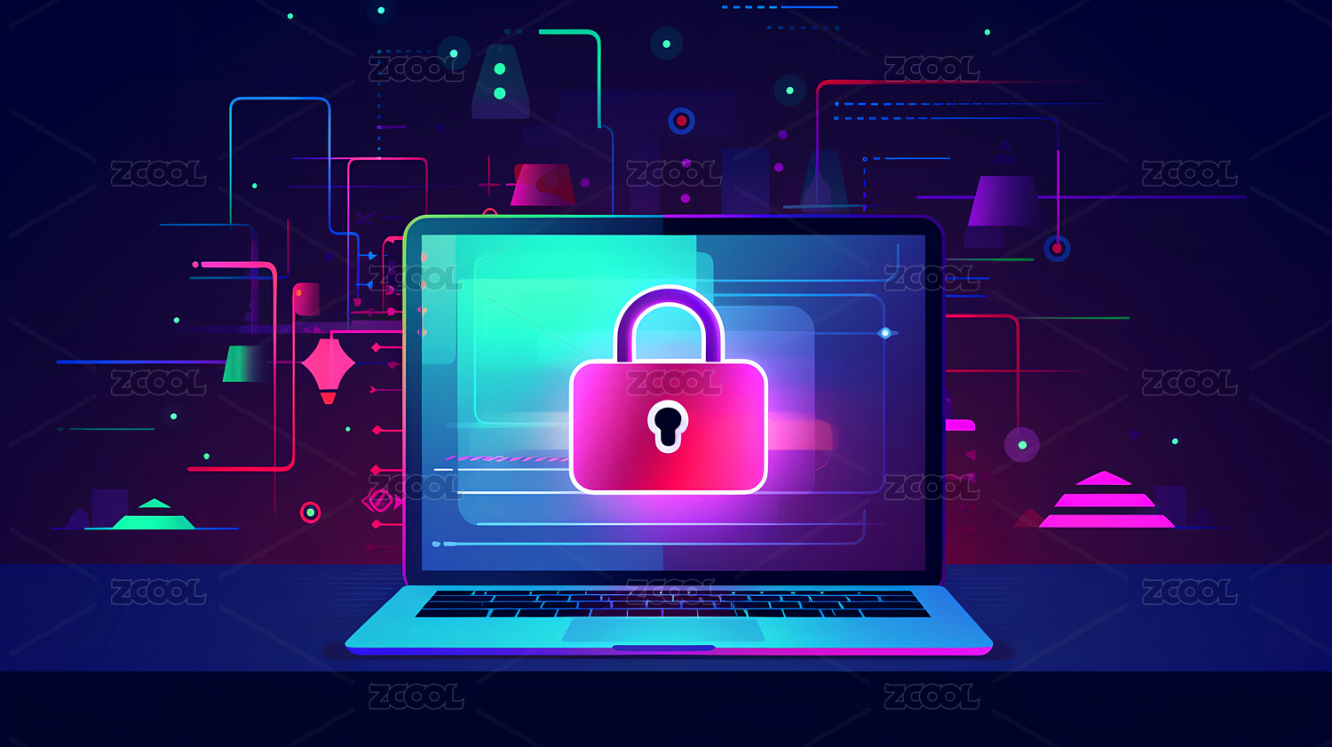 信息安全锁科技感背景插图