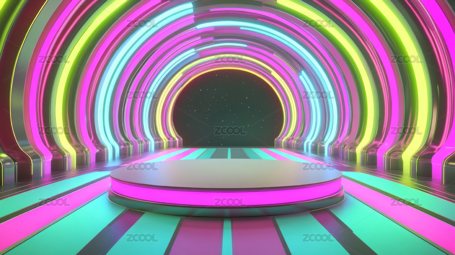 未来,科技,霓虹灯,圆形舞台,隧道,现代,展示,虚拟现实,产品展示,科幻