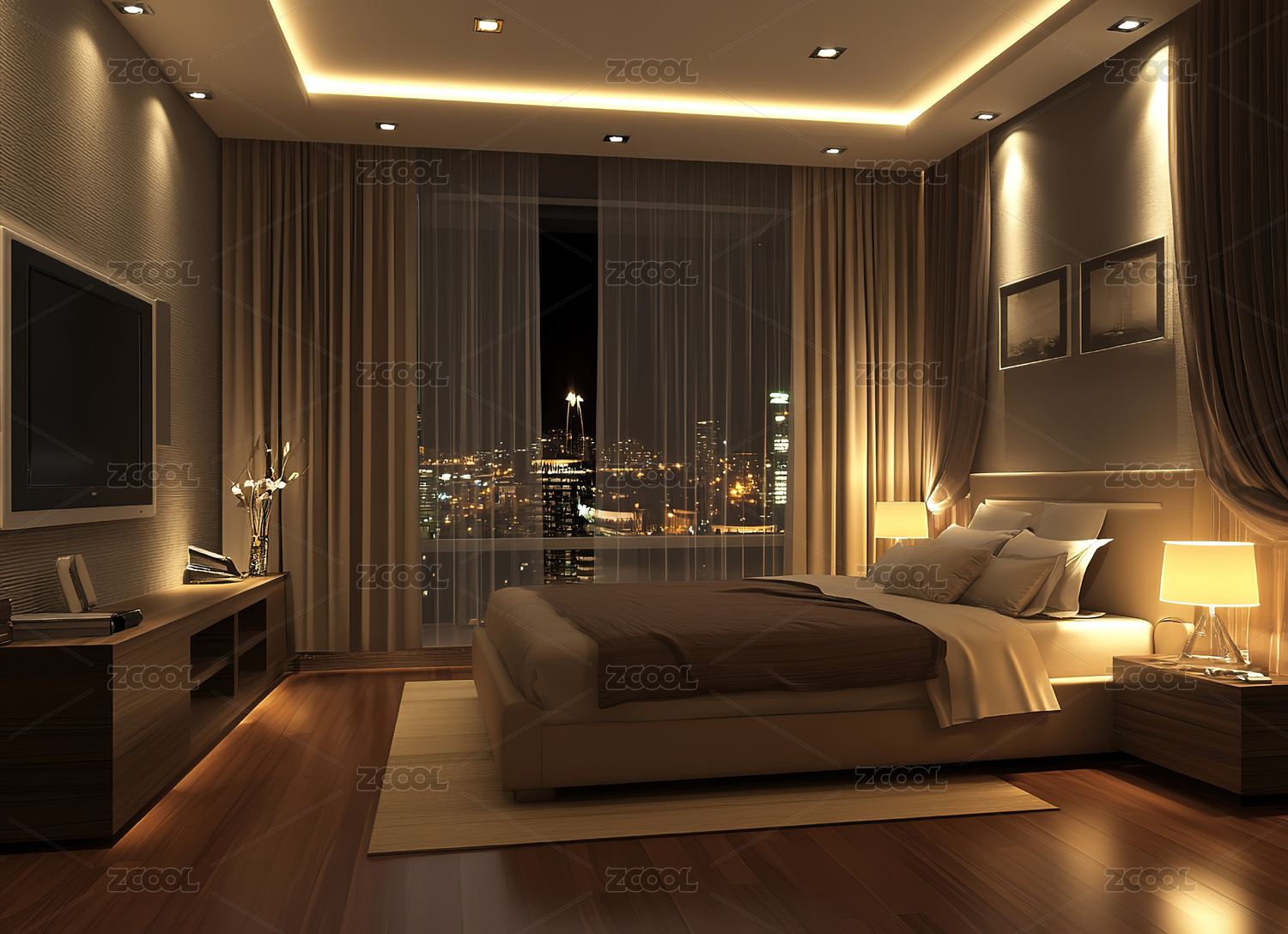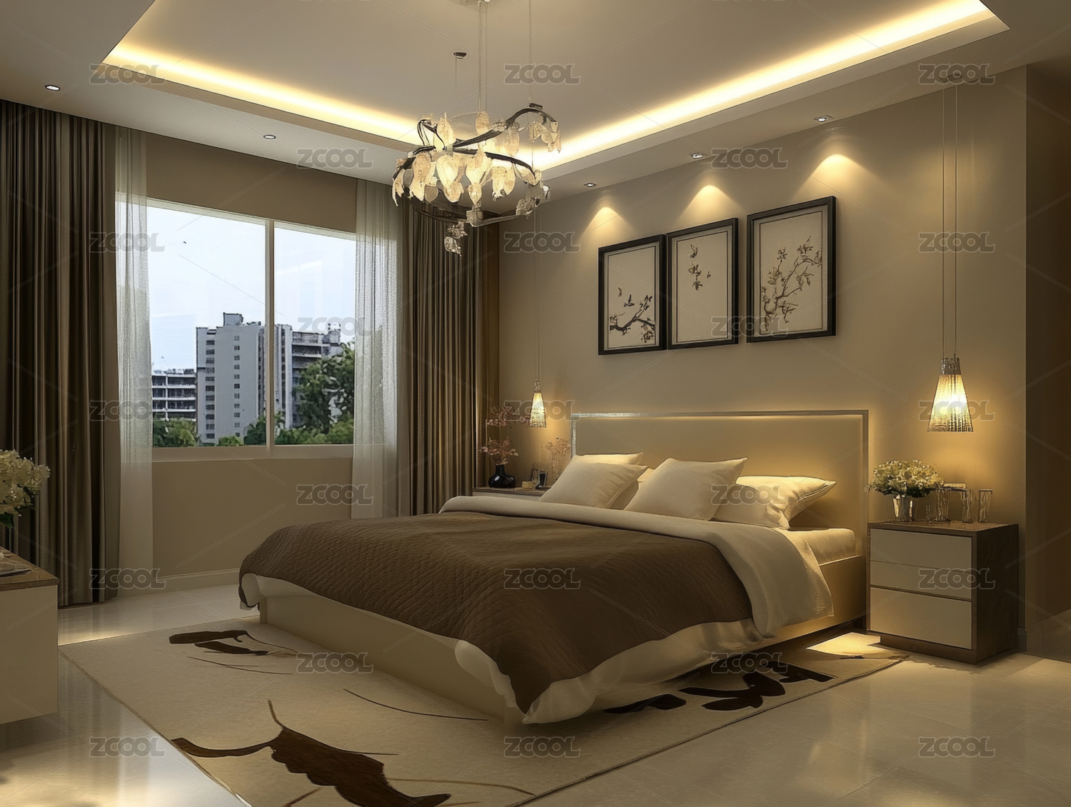 卧室,床,木质家具,台灯,地毯,装饰画,温馨,现代,简约,室内设计