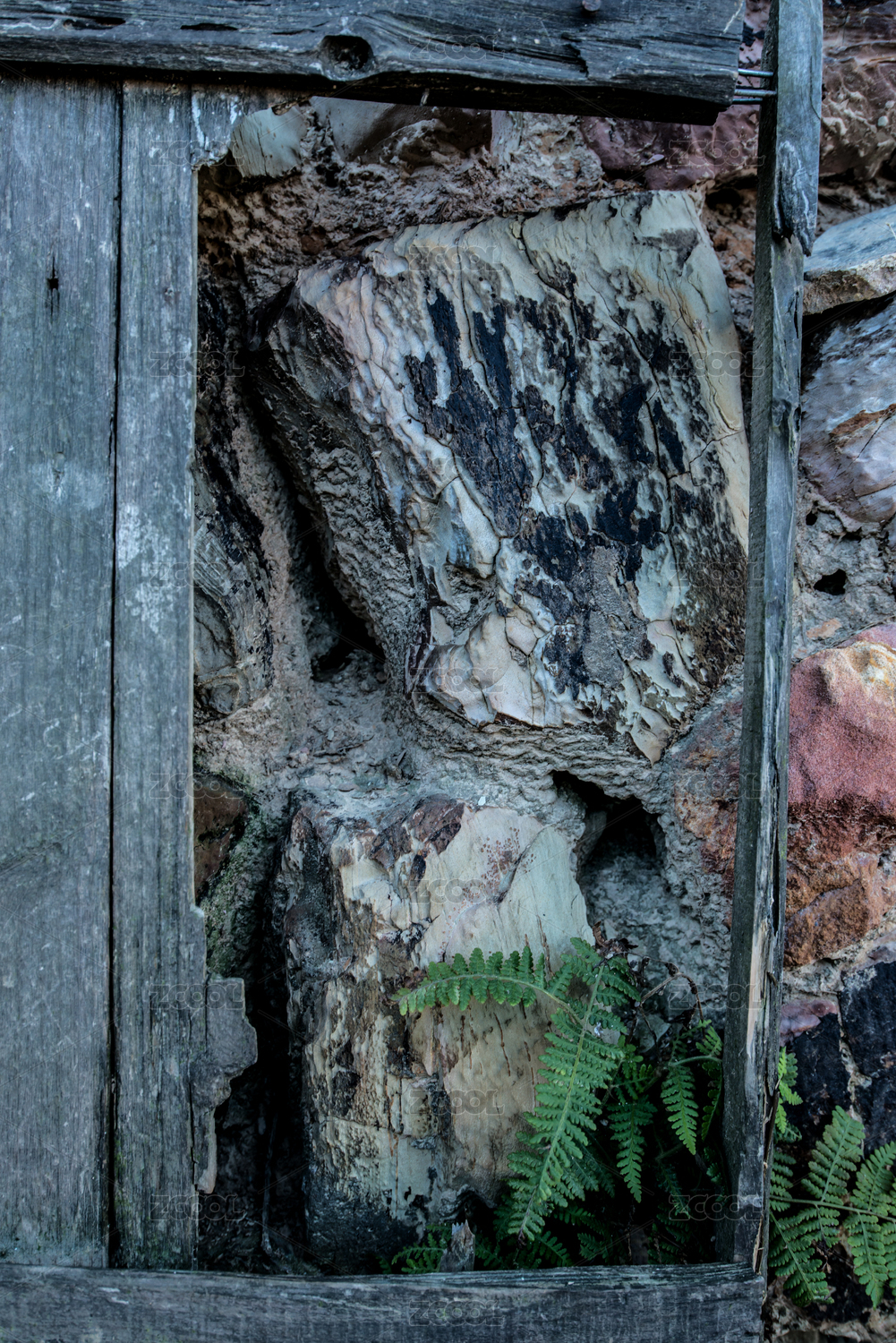 怀旧木质框架和就地取材建筑的石墙