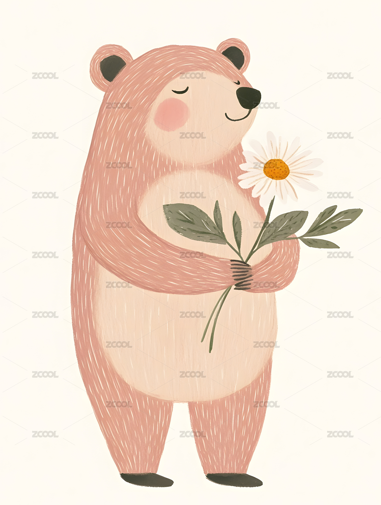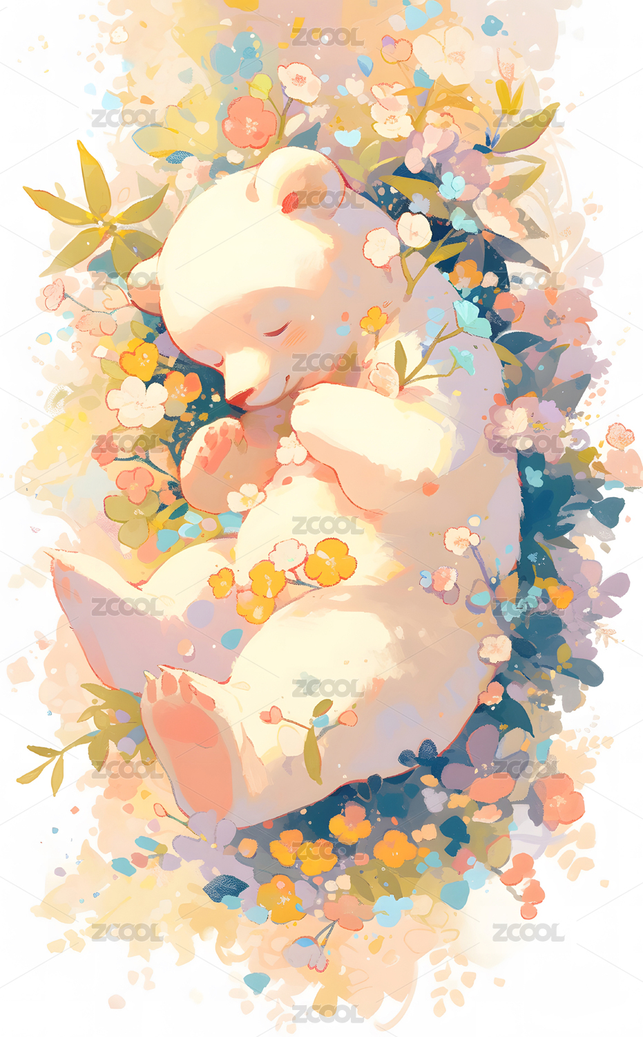 花丛,花朵,小熊,动物,植物,温馨,治愈,睡眠,睡觉