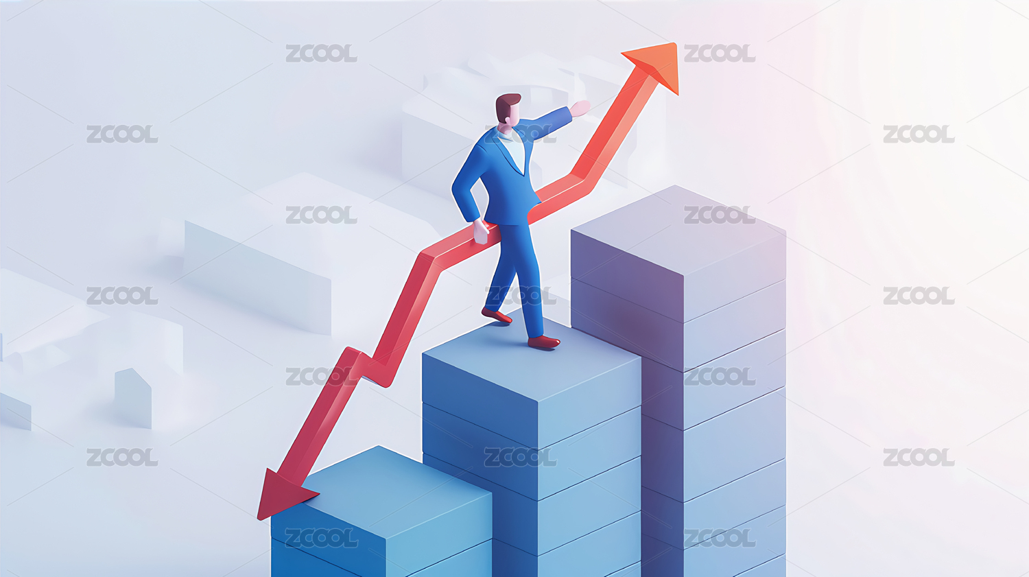 商人顺着箭头向上快速奔跑的扁平简约插画