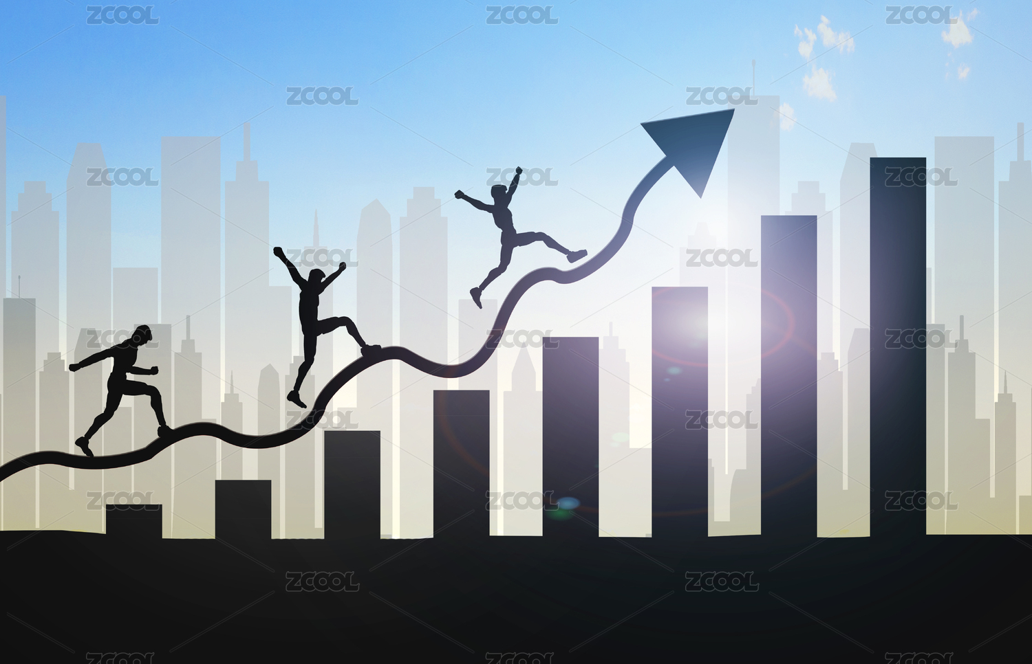 商务人物和崛起的箭头Business people and the rise of the arrow
