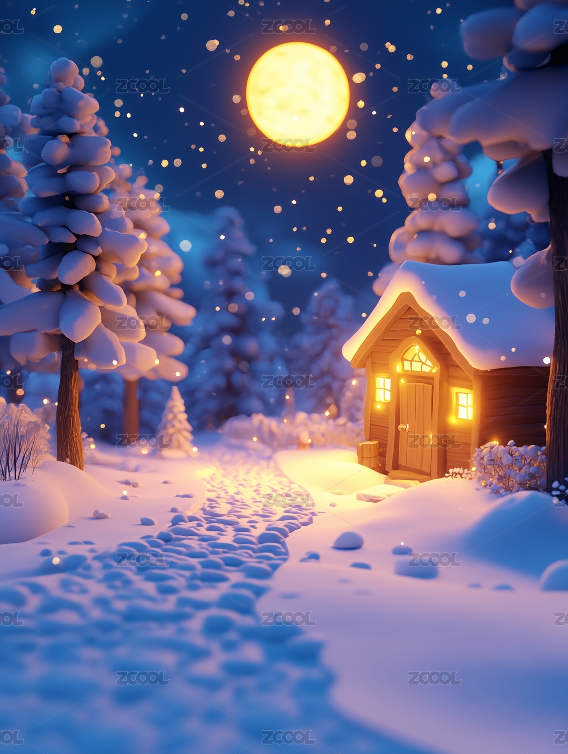 冬天雪花木屋建筑