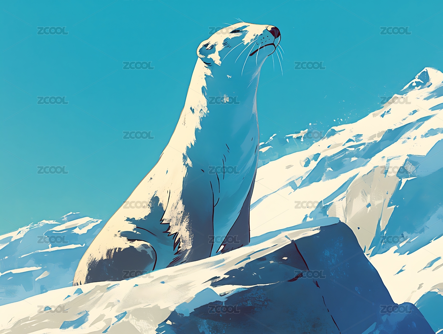 雪豹,高原,山峰,雪景,动物,野生动物,自然,风景,绘画,插画
