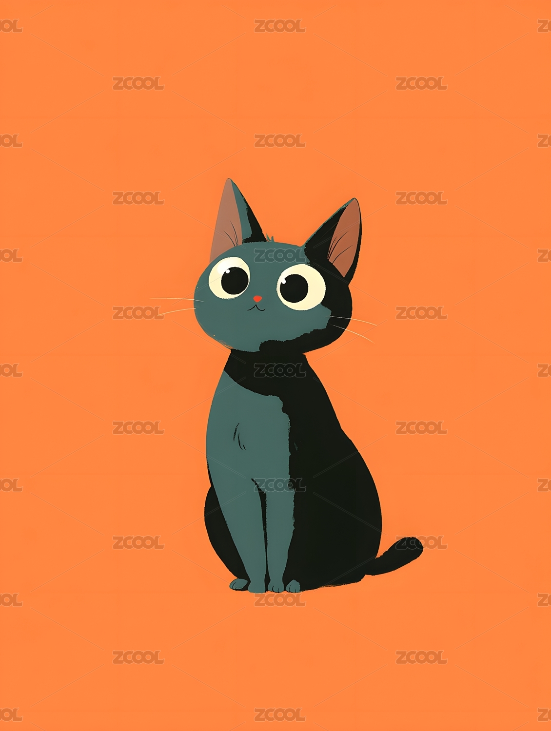 橙色背景上的大眼黑猫