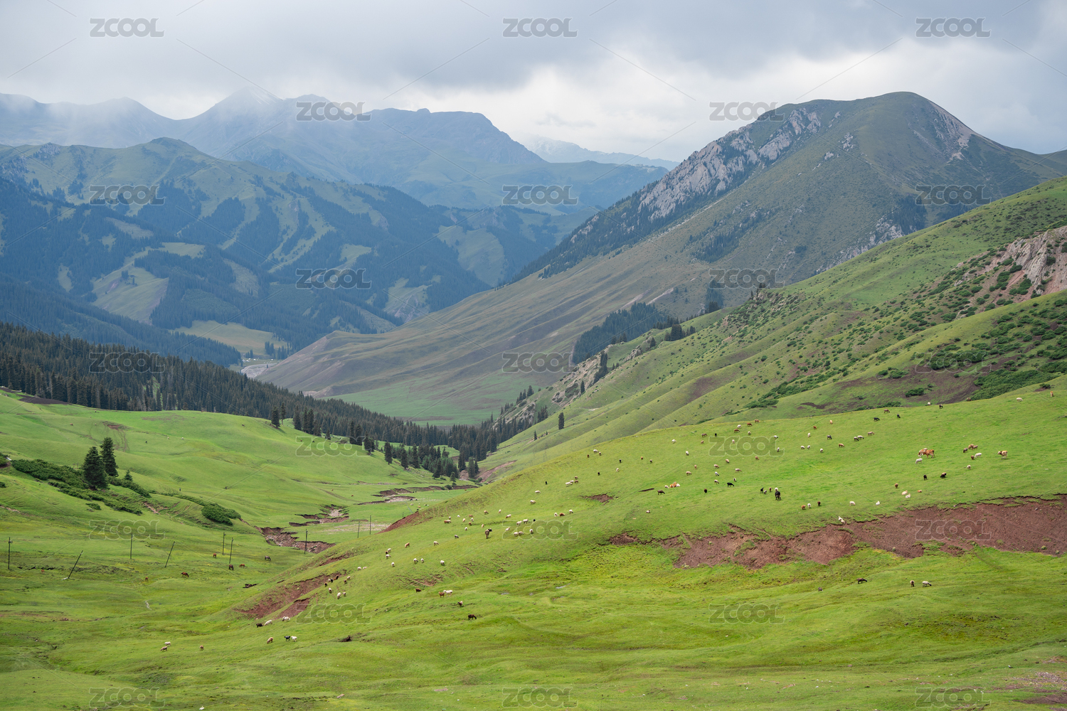 美丽的中国新疆伊犁伊昭公路沿途山地与草原