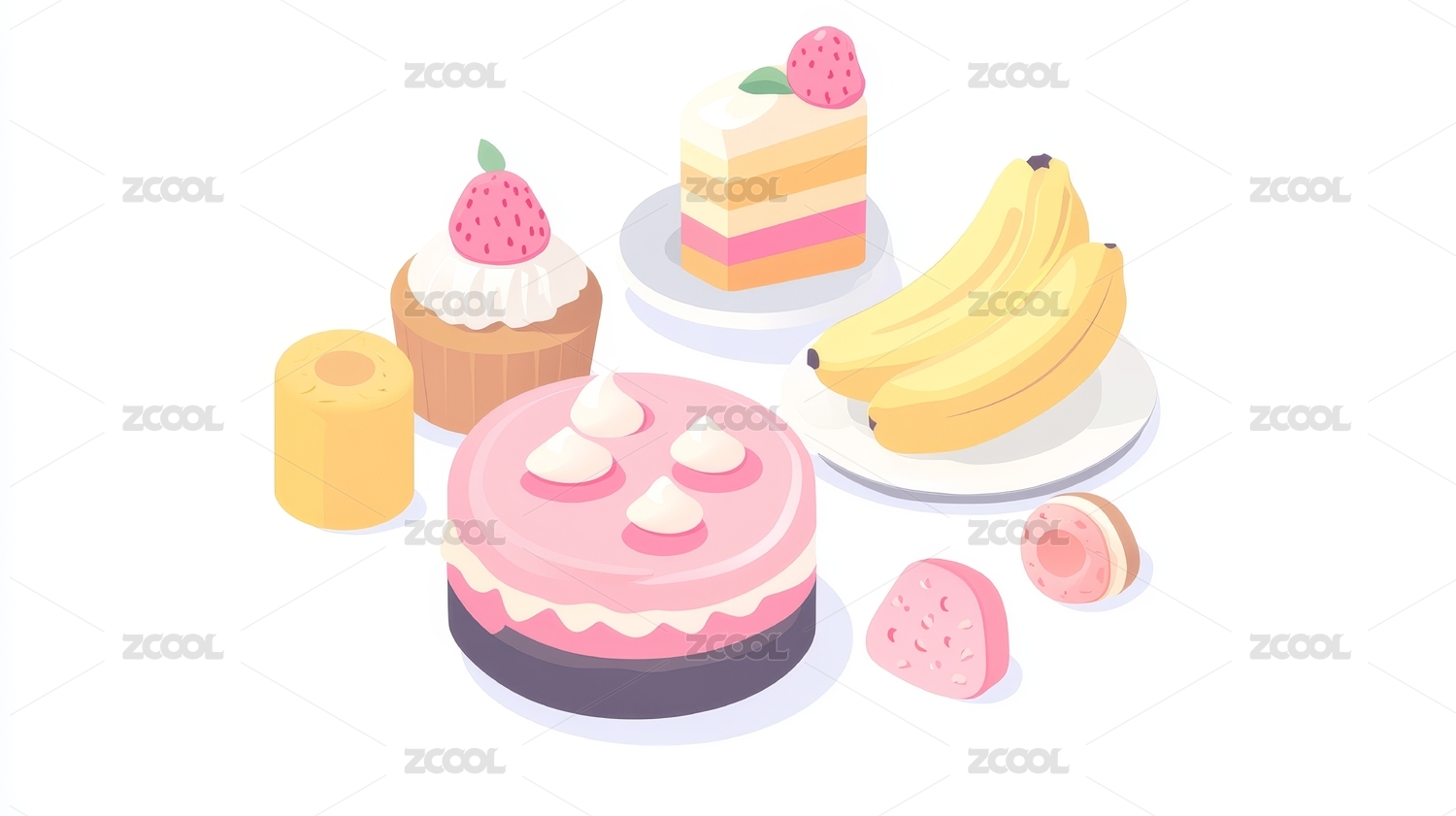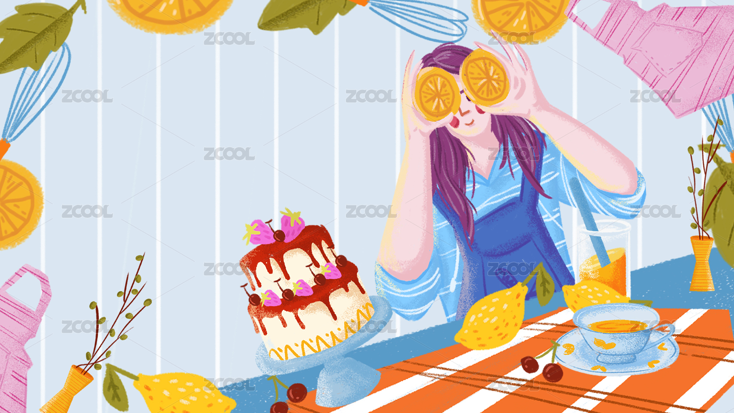 厨师蛋糕饮料烘培扁平运营插画启动页弹窗