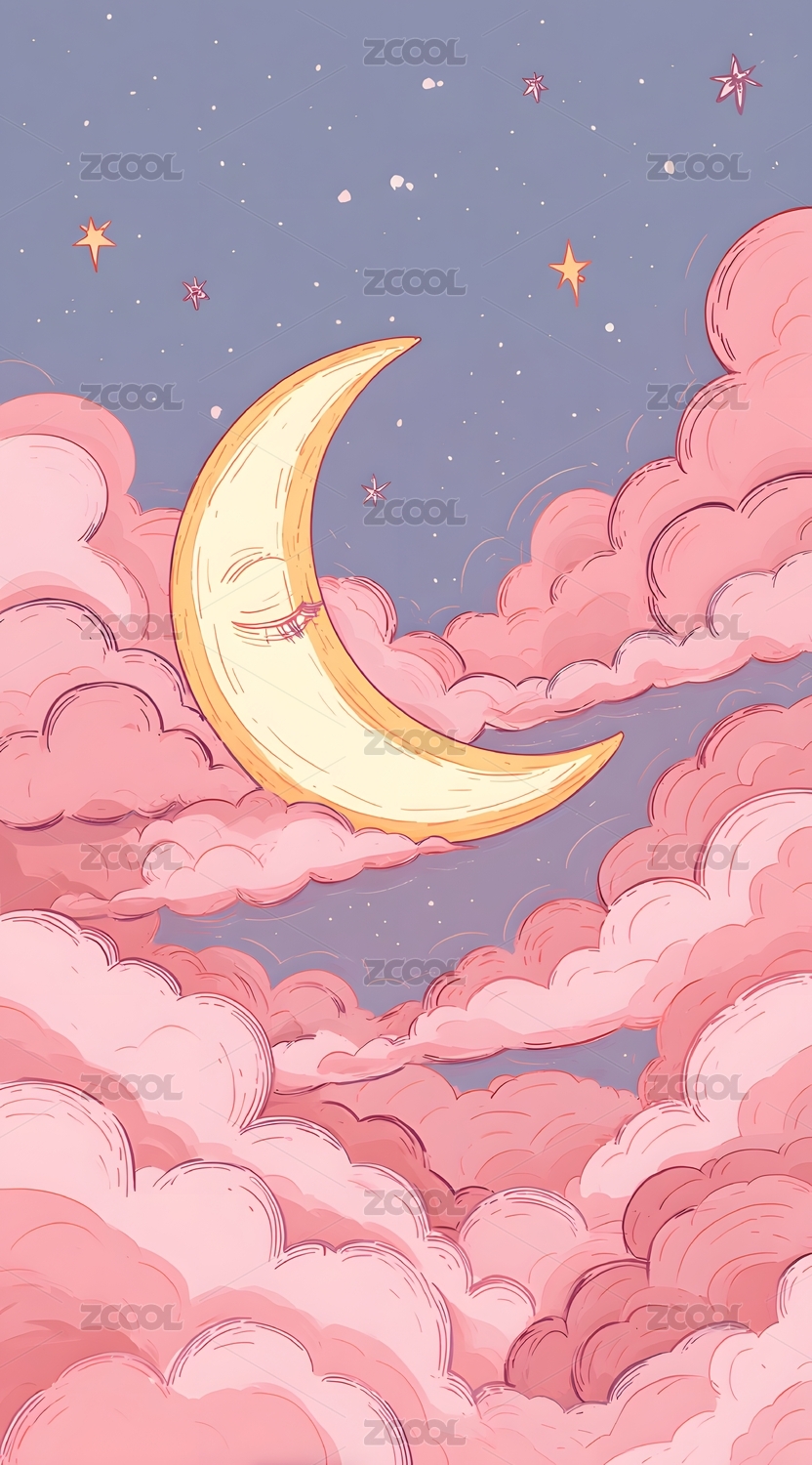 可爱月亮云朵粉色天空温馨浪漫